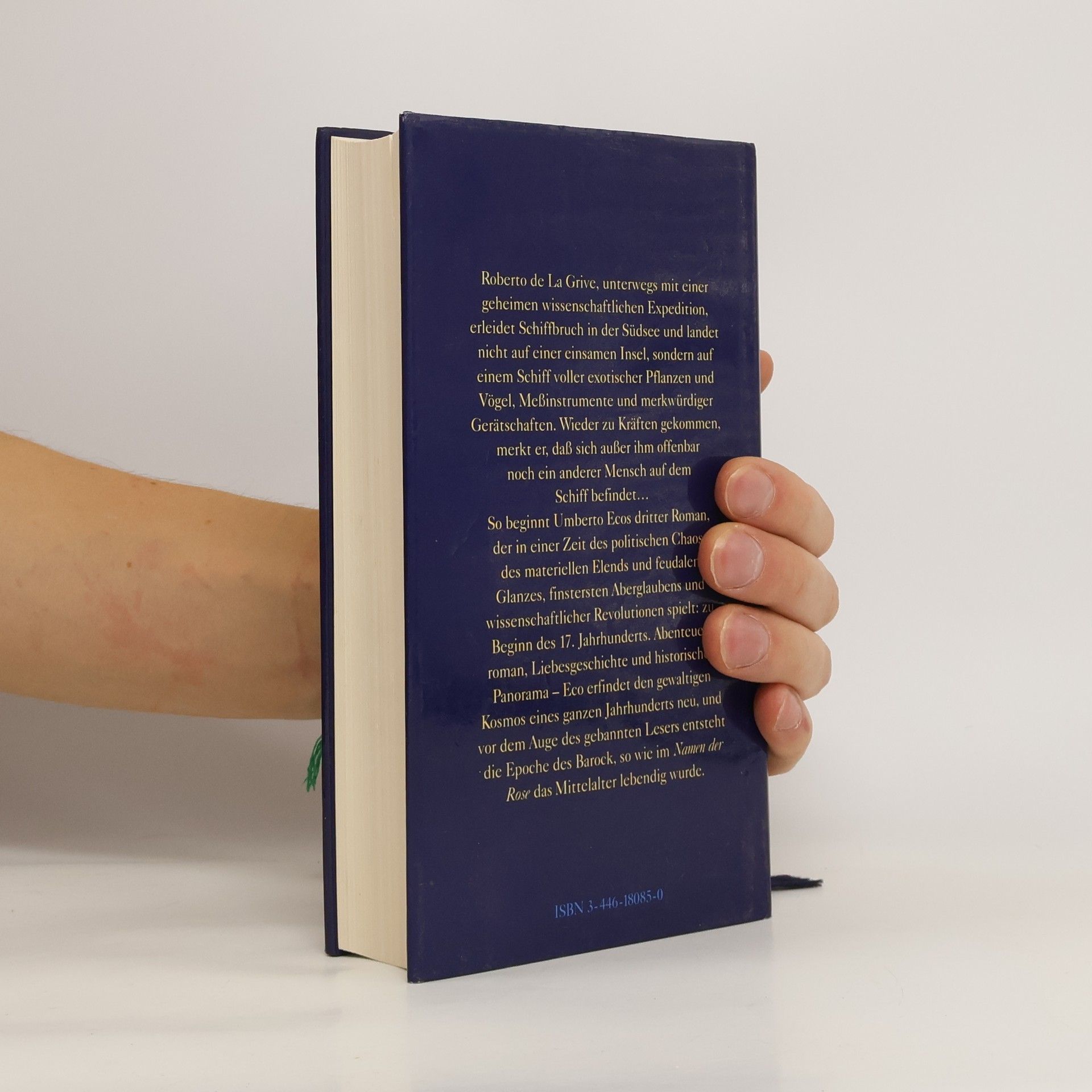 Wir schreiben das Jahr 1643, und in Europa tobt der Dreißigjährige Krieg. Wider Willen wird Roberto de La Grive zum Entdeckungsreisenden auf der Suche nach dem Nullmeridian, dem zur exakten Navigation notwendigen Fixpunkt der Erde. Ein Orkan spült ihn auf ein verlassen vor den Fidschii-Inseln treibendes Forschungsschiff. Auf diesem schwimmenden Naturalienkabinett findet er einen skurrilen Schicksalsgenossen und viel Zeit, sich die eigene unheilvolle Liebes-, Lebens- und Doppelgängergeschichte zu phantasieren. Historisches Panorama, Liebesgeschichte und Abenteuerroman - Eco erfindet den gewaltigen Kosmos eines ganzen Jahrhunderts neu.
