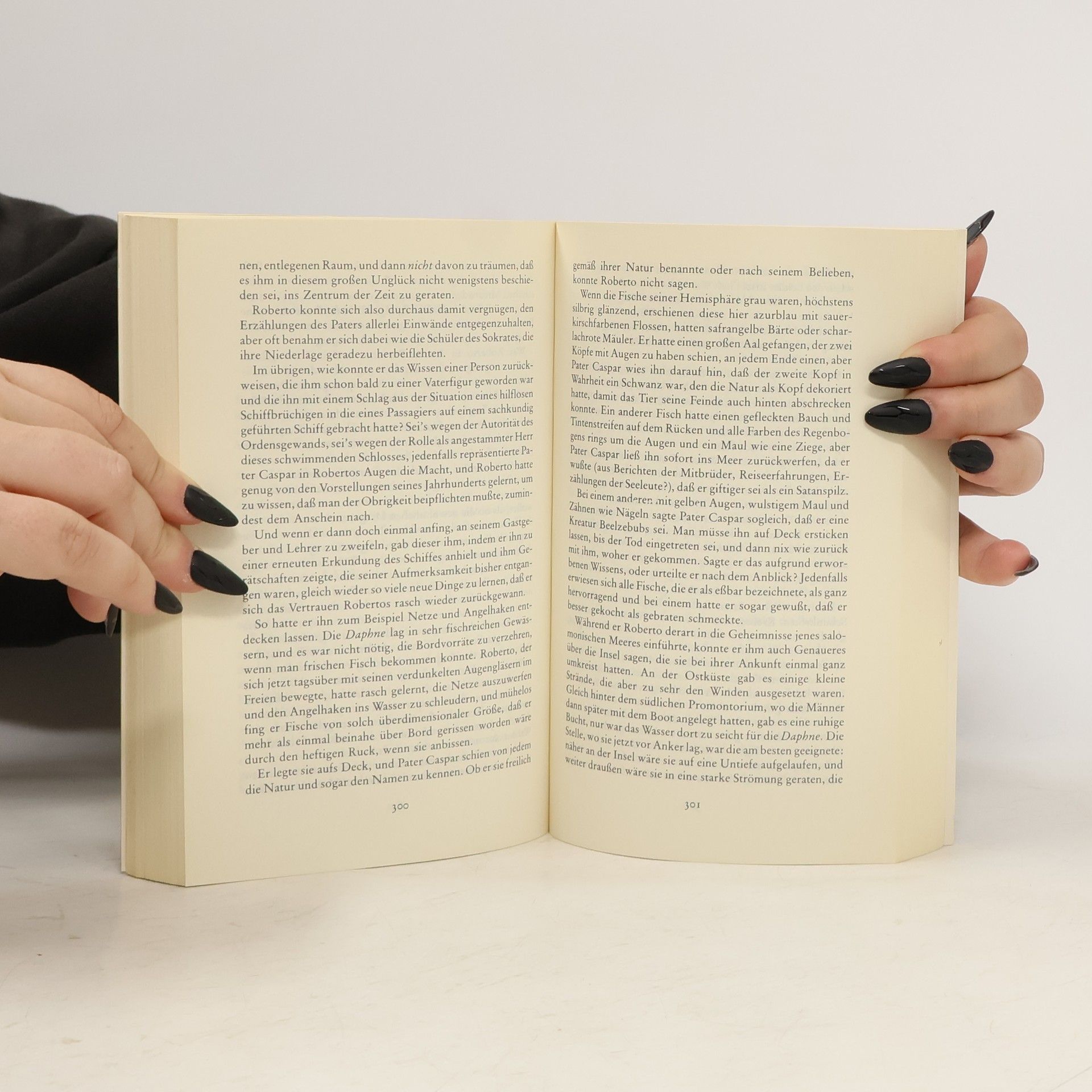 Ein Schiff voll exotischer LebewesenIm Jahre 1643: Der junge Piemontese Roberto de La Grive ist in geheimer Mission unterwegs. Als Spion im Dienste Frankreichs begibt er sich auf die Suche nach dem Nullmeridian, dem zur exakten Navigation notwendigen Fixpunkt der Erde. Doch genau in dem Moment, als er der Aufklärung des Rätsels nahe gekommen ist, sinkt sein Schiff in einem Sturm und nur Roberto kann sich retten. Tagelang treibt er im Pazifik, bis er auf ein verlassenes Schiff stößt. Aber nach einer Weile merkt er, daß noch jemand außer ihm an Bord ist. Und der Fremde ist, wie sich zeigt, hinter dem gleichen Ziel her wie Roberto ... Dennoch sieht Roberto in dem Fremden seinen Schicksalsgenossen. Von seinem Versuch, zu der Insel des vorigen Tages, die östlich der Datumsgrenze liegt, zu gelangen, kehrt der Fremde jedoch nicht mehr zurück. In seiner Verlassenheit beginnt Roberto sich einen Roman auszudenken, in dem sich Wahn und Wirklichkeit immer mehr vermischen. Dies führt zu einer waghalsigen Entscheidung ...