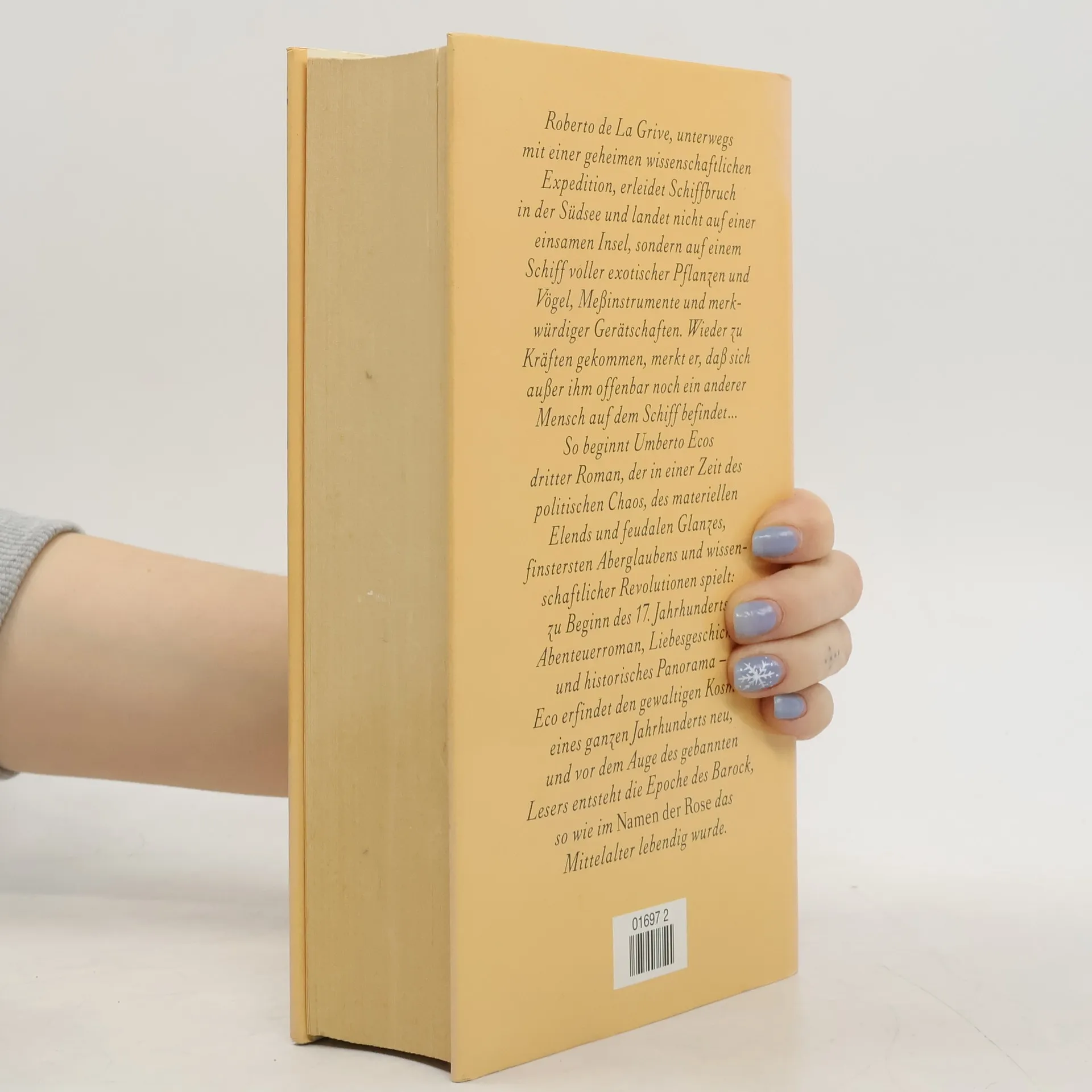 Wir schreiben das Jahr 1643, und in Europa tobt der Dreißigjährige Krieg. Wider Willen wird Roberto de La Grive zum Entdeckungsreisenden auf der Suche nach dem Nullmeridian, dem zur exakten Navigation notwendigen Fixpunkt der Erde. Ein Orkan spült ihn auf ein verlassen vor den Fidschii-Inseln treibendes Forschungsschiff. Auf diesem schwimmenden Naturalienkabinett findet er einen skurrilen Schicksalsgenossen und viel Zeit, sich die eigene unheilvolle Liebes-, Lebens- und Doppelgängergeschichte zu phantasieren. Historisches Panorama, Liebesgeschichte und Abenteuerroman - Eco erfindet den gewaltigen Kosmos eines ganzen Jahrhunderts neu.