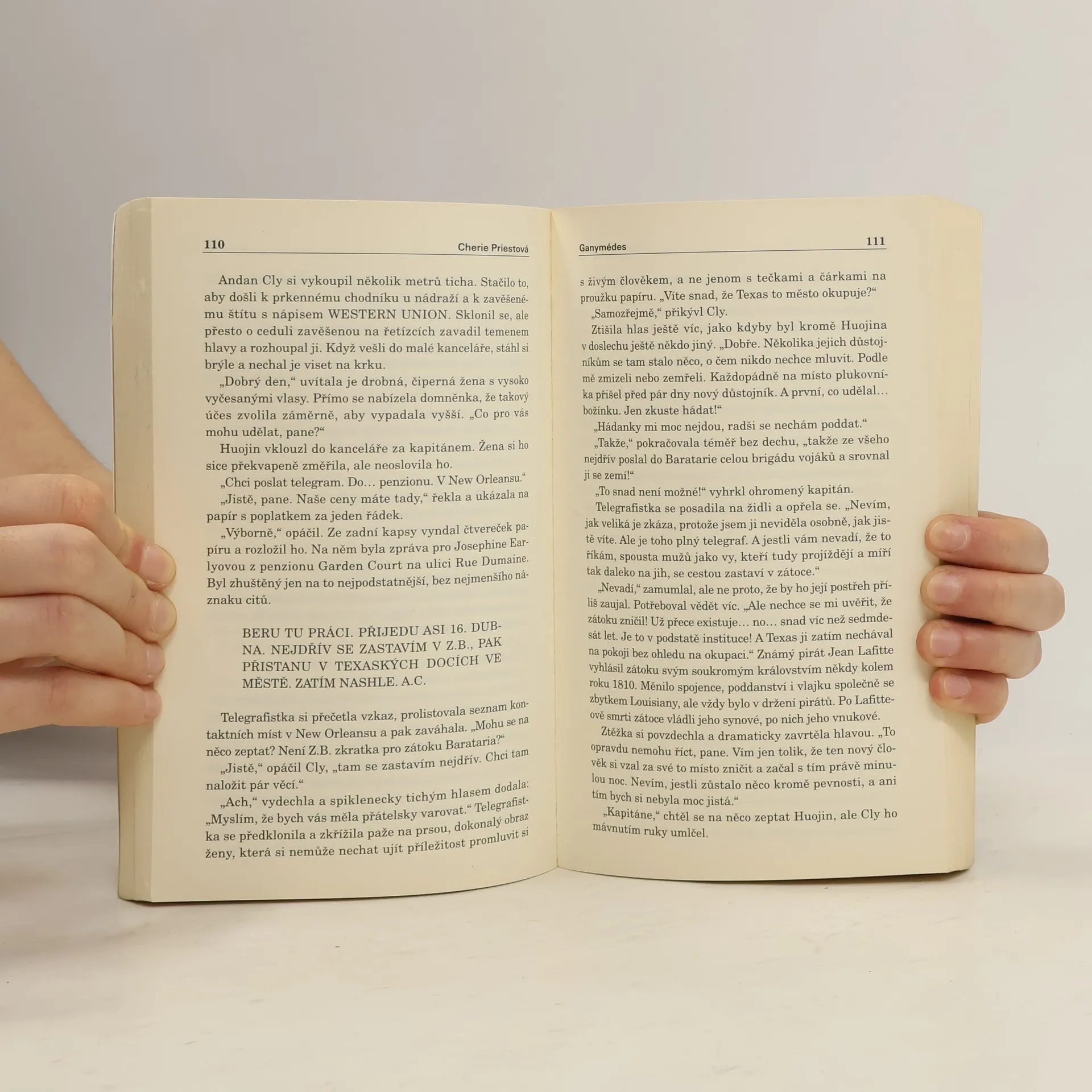 Na dně jezera Pontchartrain spočívá děs budící ponorka Ganymédes. Válečný stroj, který by dokázal ukončit válku, kdyby se našel někdo, kdo by jej dokázal ovládat. A kdyby v jeho útrobách nenašel smrt každý, kdo do něj kdy vstoupil... New Orleans není zrovna místem, které by Andan Cly toužil znovu navštívit, ale poté, co dostane telegram s pracovní nabídkou, naskytne se mu možnost spojit dva výnosné obchody. Tomu nelze odolat! Vydává se tedy na cestu, aniž by měl tušení, do čeho se pouští. První vydání.