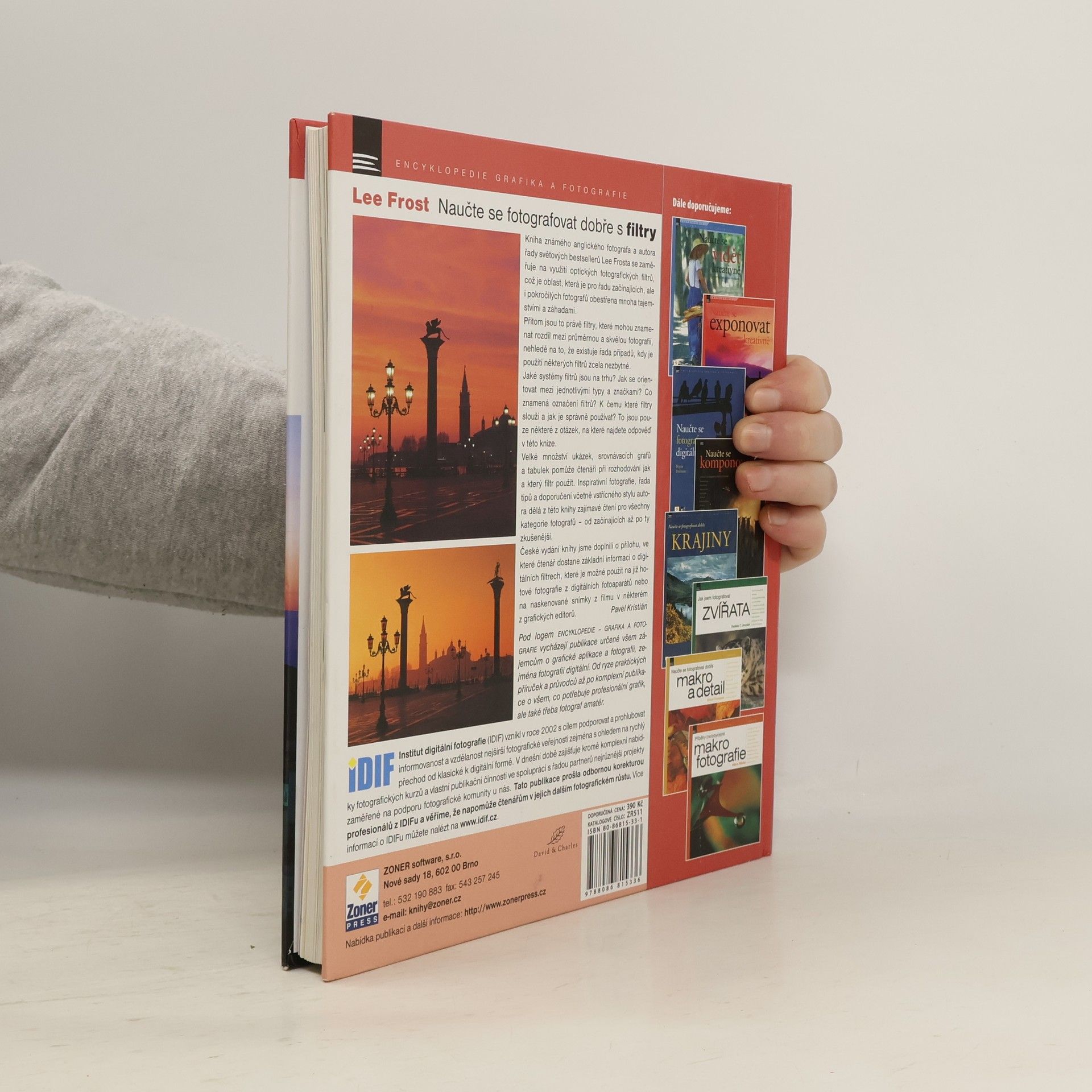 Kniha známého anglického fotografa a autora řady světových bestsellerů Lee Frosta se zaměřuje na využití optických fotografických filtrů, což je oblast, která je pro řadu začínajících, ale i pokročilých fotografů obestřena mnoha tajemstvími a záhadami. Přitom jsou to právě filtry, které mohou znamenat rozdíl mezi průměrnou a skvělou fotografií, nehledě na to, že existuje řada případů, kdy je použití některých filtrů zcela nezbytné. Jaké systémy filtrů jsou na trhu? Jak se orientovat mezi jednotlivými typy a značkami? Co znamená označení filtrů? K čemu které filtry slouží a jak je správně používat? To jsou pouze některé z otázek, na které najdete odpověď v této knize.
