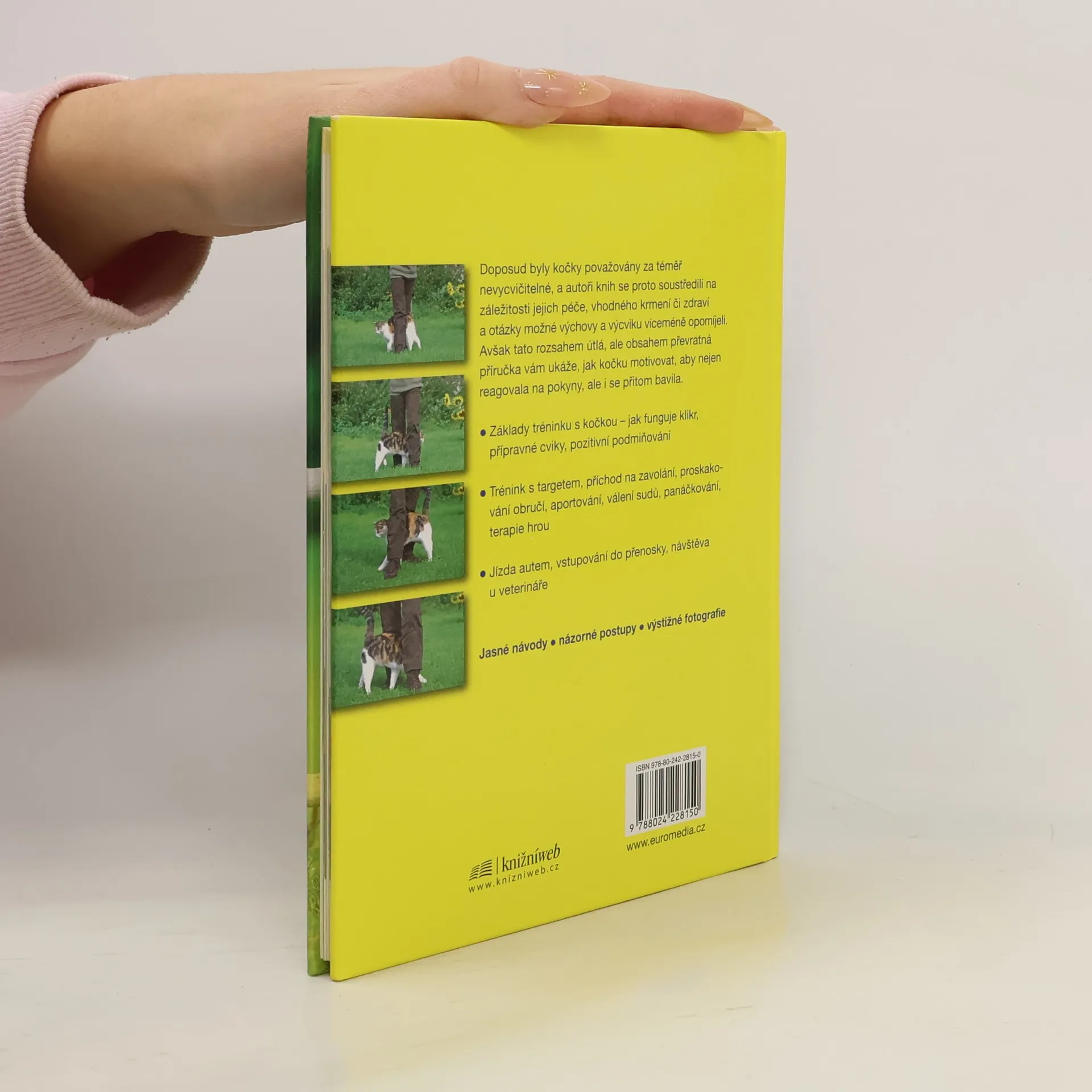Doposud byly kočky považovány za víceméně nevycvičitelné, a autoři knih se proto soustředili především na záležitosti jejich péče, vhodného krmení či zdraví a otázky možné výchovy a výcviku víceméně opomíjeli. Tato rozsahem útlá, ale obsahem převratná příručka vám ukáže, jak kočku motivovat, aby nejen reagovala na pokyny, ale i se přitom bavila.