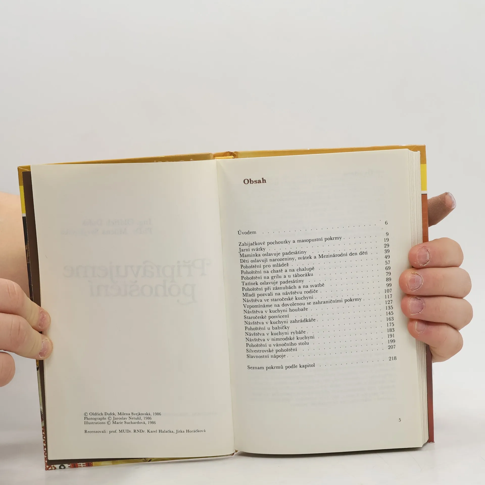 Recepty pro nejrůznější příležitosti, pohoštění k narozeninám, na Velikonoce či Silvestra, zabijačkové pochoutky, staročeské posvícení, návštěva v kuchyni houbaře, zahrádkáře nebo rybáře