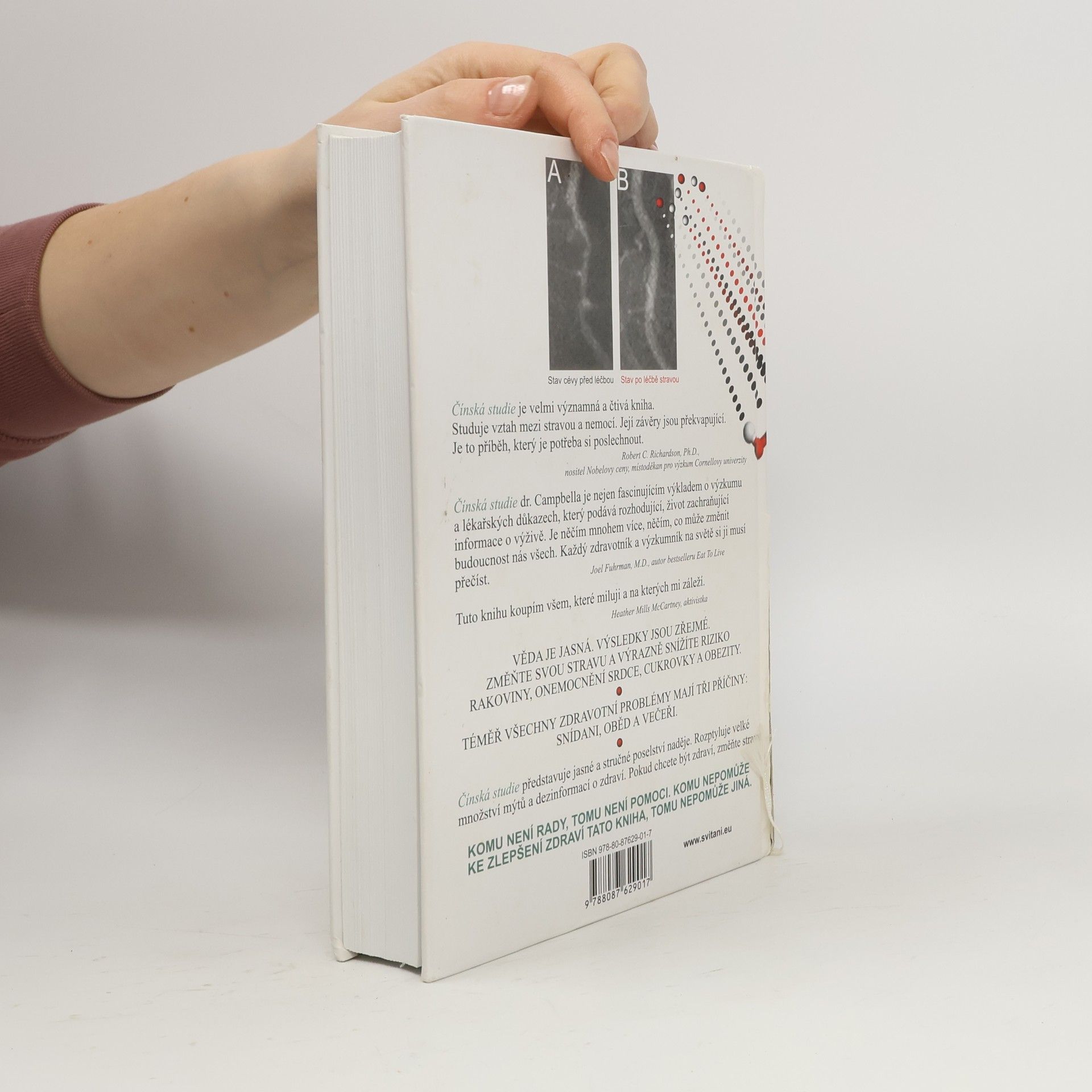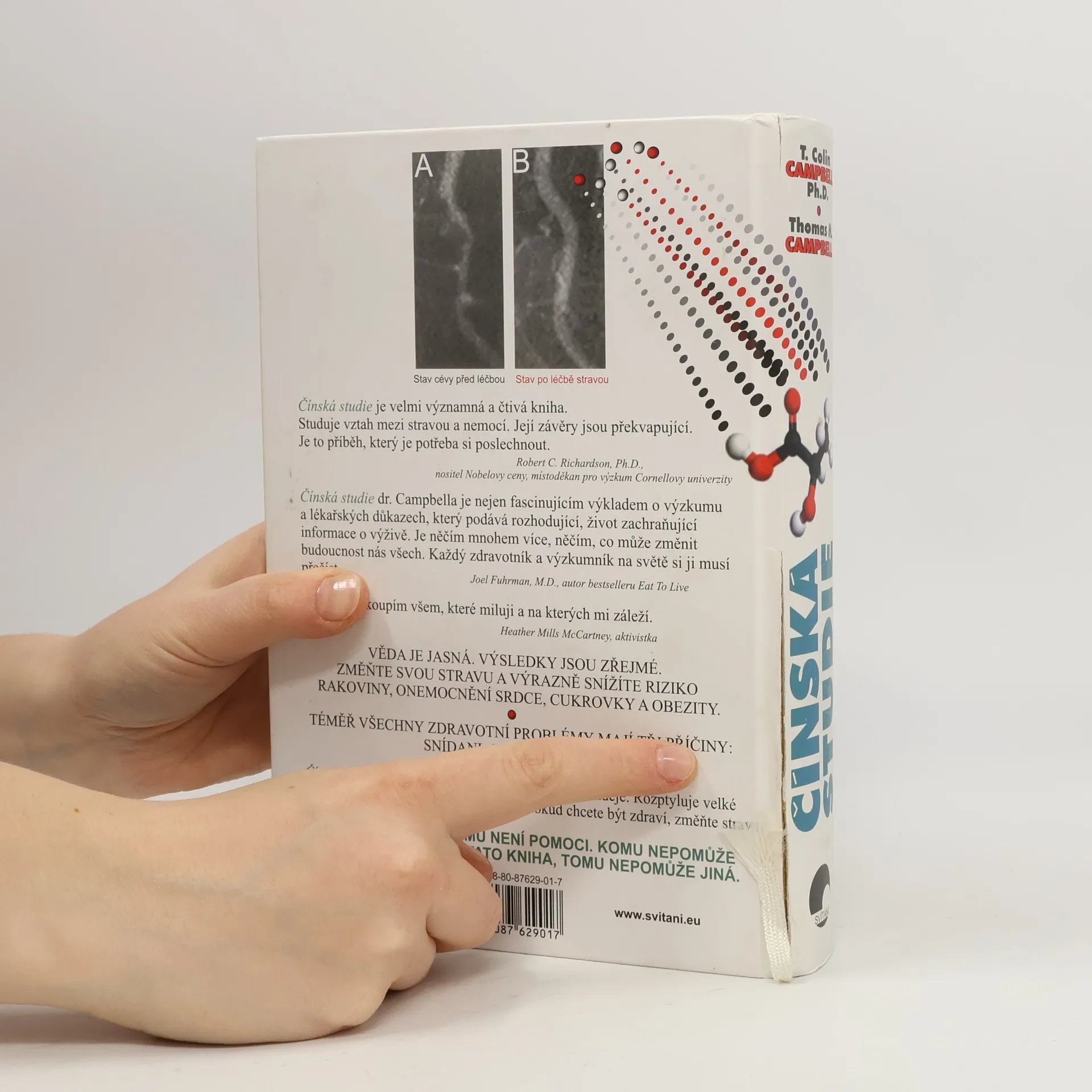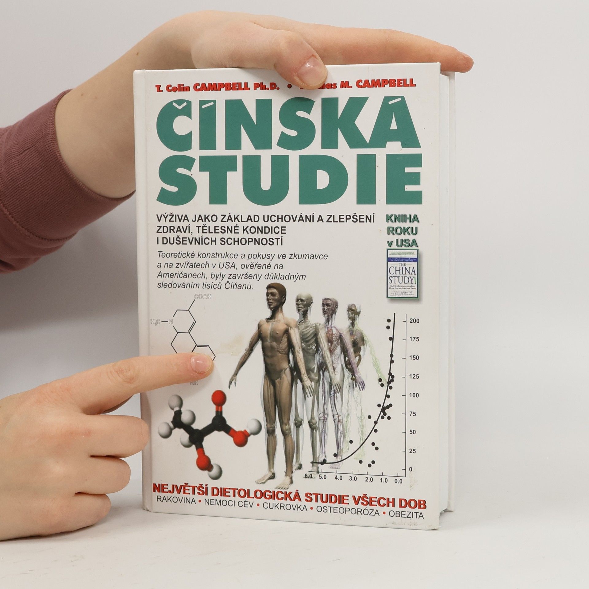 Dílo bylo v USA oceněno jako Kniha roku a představuje nejobsáhlejší studii o výživě všech dob. Colin Campbell, profesor biochemie výživy na Cornellově univerzitě, se věnuje výzkumu výživy více než 40 let a je autorem více než 350 výzkumných prací. Jeho odkaz, Čínská studie, je výsledkem 20letého partnerství Cornellovy univerzity, Oxfordské univerzity a Čínské akademie preventivního lékařství. Studie, zahájená v roce 1983, sledovala 6 500 lidí a odhalila 8 000 statisticky významných vztahů mezi stravou, životním stylem a zdravotním stavem. Pozorování se zaměřila na Číňany z kontinentální Číny, kteří mají podobné genetické pozadí a ustálené stravovací návyky. Kniha je určena zdravotníkům i laické veřejnosti a zaměřuje se na praktické informace o zdravé výživě. Zabývá se nemocemi jako rakovina, srdeční a mozková onemocnění, diabetes, vysoký krevní tlak, artritida, Alzheimerova nemoc a osteoporóza. Zdraví Západu je v úpadku, přičemž dvě třetiny populace trpí nadváhou a miliony mají diabetes. Děti onemocní dříve a užívají více léků na předpis. Všechny tyto problémy mají tři příčiny: snídani, oběd a večeři. Kniha přináší nadějné poselství a vyvrací mýty o zdraví – pokud chcete zdraví, změňte stravu. Třetí vydání.