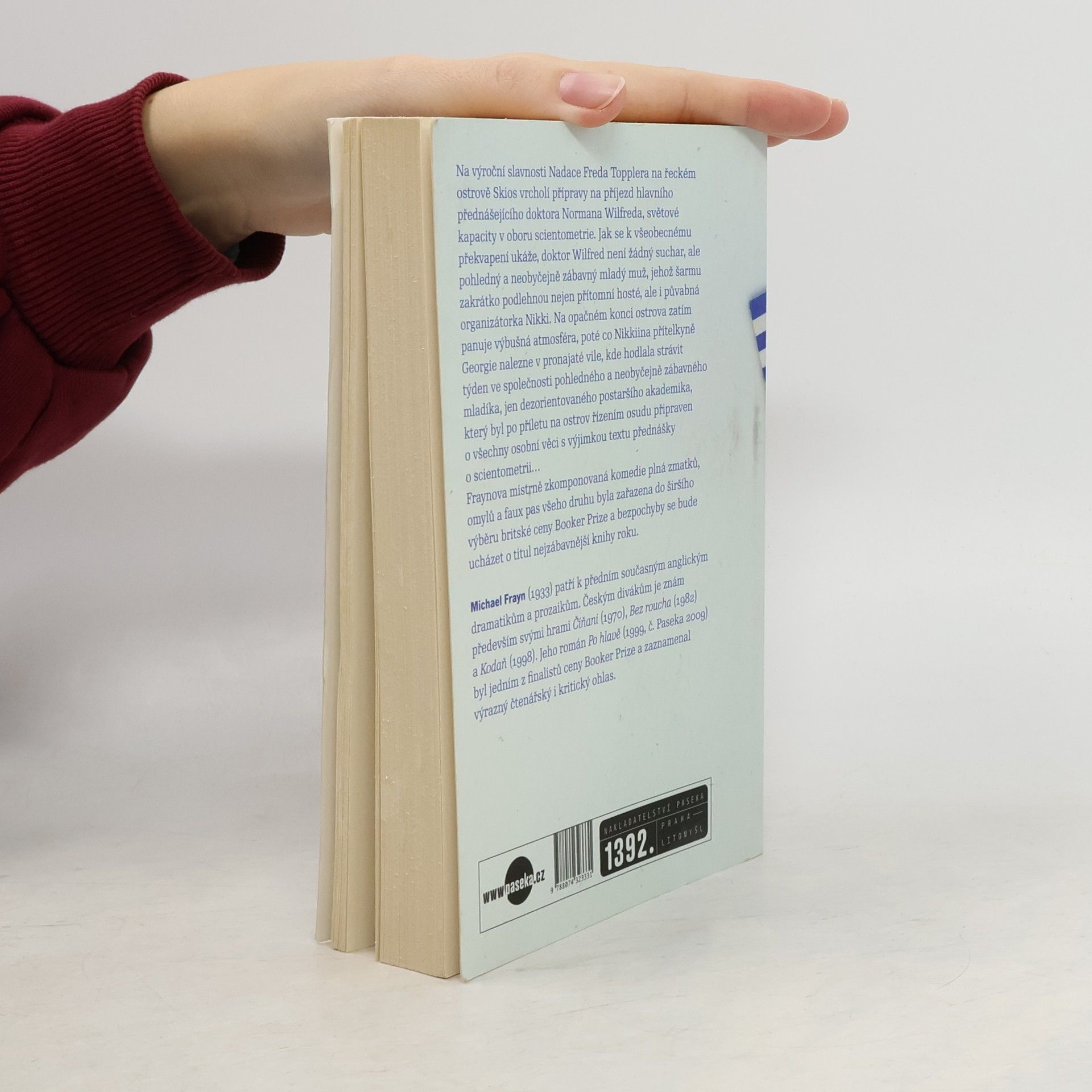 Na výročním setkání věhlasné Nadace Freda Topplera, jež hostí řecký ostrov Skios, vrcholí přípravy na příjezd hlavního hosta dr. Normana Wilfreda, světové kapacity v oboru scientometrie. Jak se k všeobecnému překvapení ukáže, obávaný dr. Wilfred není žádný suchar, ale pohledný a nadmíru zábavný mladý muž, jehož šarmu zakrátko podlehnou nejen přítomní hosté, ale i půvabná organizátorka Nikki. Na opačném konci ostrova zatím panuje výbušná atmosféra poté, co Nikkiina přítelkyně Georgie nalezne v pronajaté vile, v níž hodlá strávit týden ve společnosti pohledného a zábavného milence, jen zcela dezorientovaného postaršího akademika, po příletu na ostrov nešťastným řízením osudu připraveného o všechny osobní věci s výjimkou textu přednášky o scientometrii… Mistrně zkomponovaná komedie plná přehmatů, komplotů a faux pas z pera známého anglického prozaika a dramatika byla horkým kandidátem na titul nejzábavnější knihy roku.