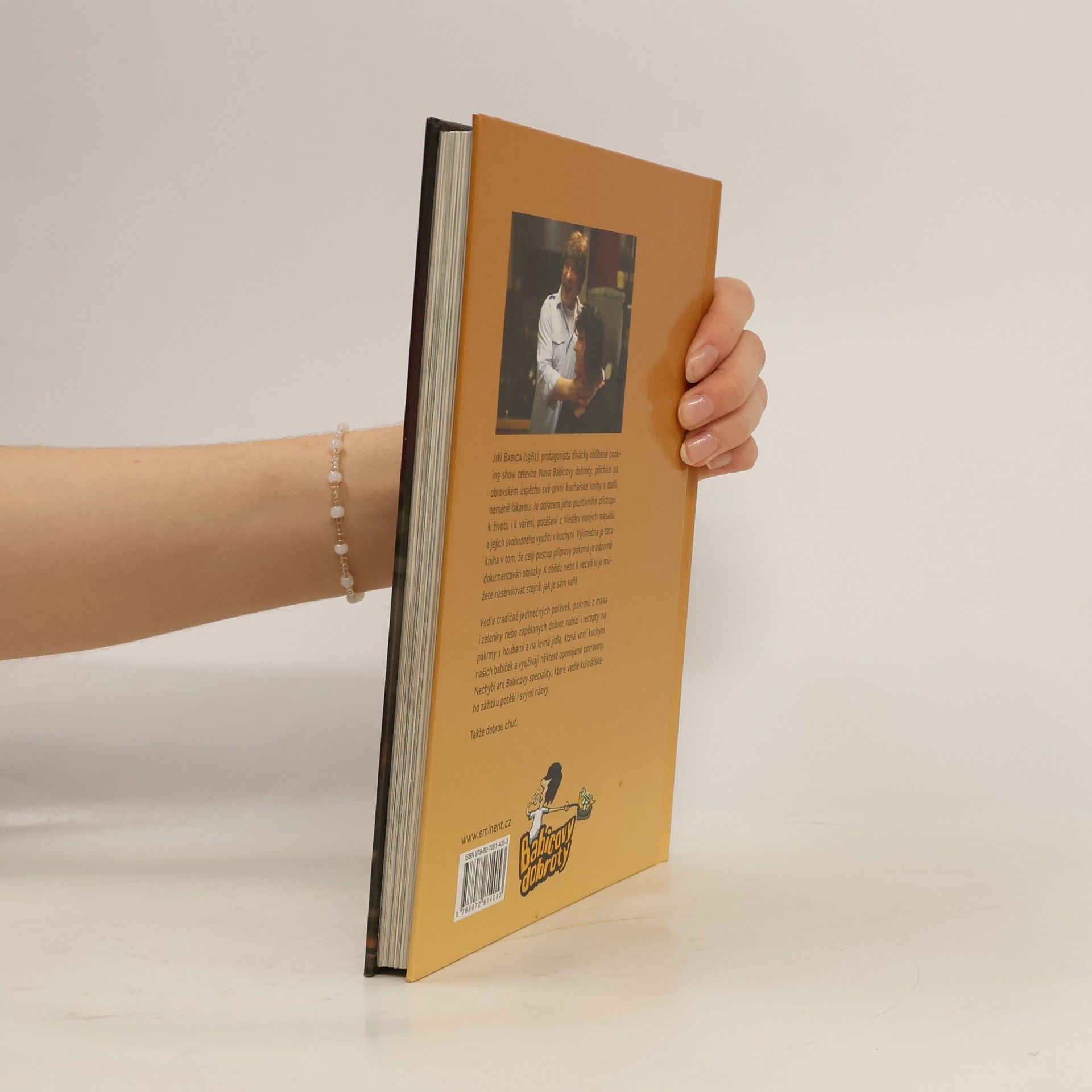 Jiří Babica (1961), protagonista oblíbené cooking show Babicovy dobroty televize Nova, přichází po obrovském úspěchu první se svojí další kuchařskou knihou. Je naplněna jeho pozitivním přístupem k životu i k vaření, potěšením z hledání nových nápadů a jejich svobodným využitím v kuchyni. Výjimečná je v tom, že přináší názorné postupy, které dokumentují celou přípravu jídel. K obědu nebo k večeři si je můžete naservírovat stejně, jak je sám vařil. Vedle tradičně jedinečných polévek, pokrmů z masa i zeleniny nebo zapékaných dobrot nabízí i recepty na pokrmy s houbami a levná jídla, která voní kuchyní našich babiček a využívají některé opomíjené potraviny. Nechybí ani Babicovy speciality, které vedle kulinářského zážitku potěší i svými názvy. Takže dobrou chuť.