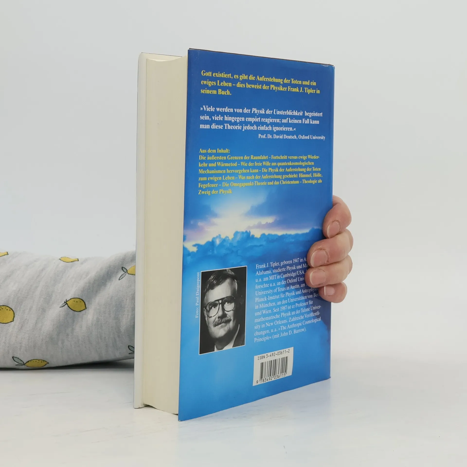 Der amerikanische Physiker Professor F. J. Tipler unternimmt den Versuch, die Existenz Gottes und die Auferstehung nach dem Tode mit den Mitteln der Naturwissenschaft zu beweisen. „Zu Beginn meiner Laufbahn als Physiker hätte ich mir nie träumen lassen, daß ich eines Tages als Physiker schreiben würde, daß es den Himmel gibt und daß jeden, und zwar jeden einzelnen von uns, ein Leben nach dem Tode erwartet. Und doch, hier stehe ich und schreibe Dinge, die mein früheres Ich als wissenschaftlichen Unsinn abgetan hätte.“