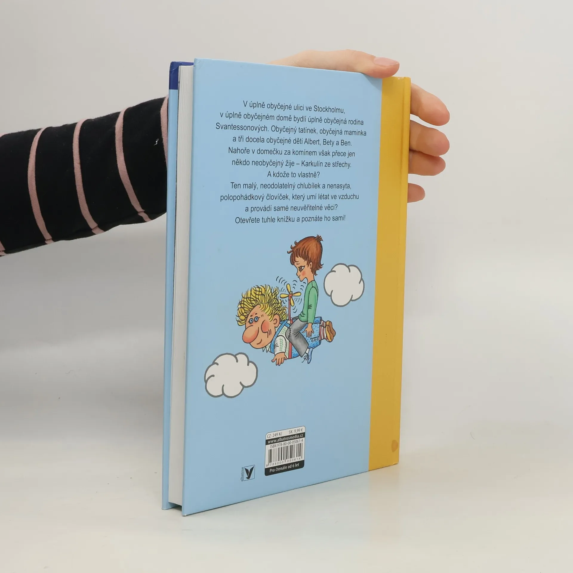 V úplně obyčejné ulici ve Stockholmu, v úplně obyčejném domě bydlí úplně obyčejná rodina Svantessonových. Obyčejný tatínek, obyčejná maminka a tři docela obyčejné děti Albert, Bety a Ben. Nahoře v domečku za komínem však přece jen někdo neobyčejný žije – Karkulín ze střechy. A kdože to vlastně je? Ten malý, neodolatelný chlubílek a nenasyta, polopohádkový človíček, který umí létat ve vzduchu a provádí samé neuvěřitelné věci? Otevřete tuhle knížku a poznáte ho sami!