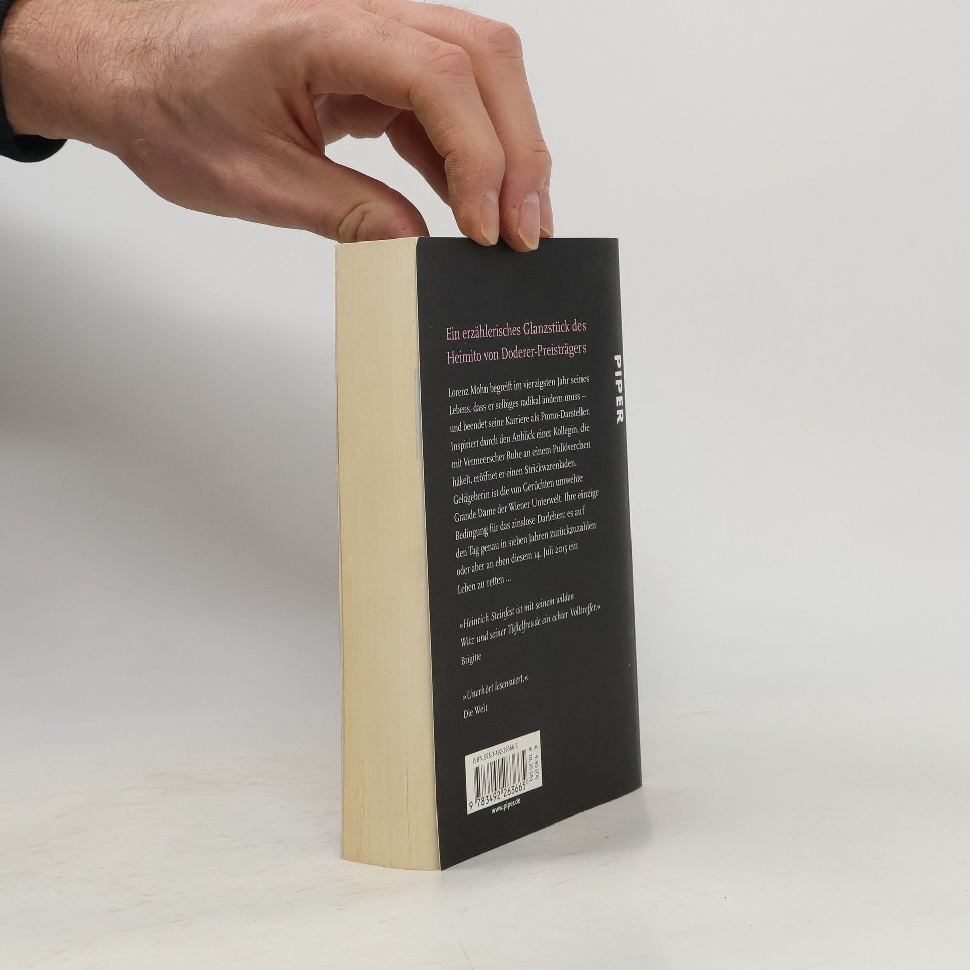 Lorenz Mohn begreift im vierzigsten Jahr seines Lebens, dass er selbiges radikal ändern muss – und beendet seine Karriere als Porno-Darsteller. Inspiriert durch den Anblick einer Kollegin, die mit Vermeerscher Ruhe an einem Pullöverchen häkelt, eröffnet er einen Strickwarenladen. Geldgeberin ist die von Gerüchten umwehte Grande Dame der Wiener Unterwelt. Ihre einzige Bedingung für das zinslose Darlehen: es auf den Tag genau in sieben Jahren zurückzuzahlen oder aber an eben diesem 14. Juli 2015 ein Leben zu retten …