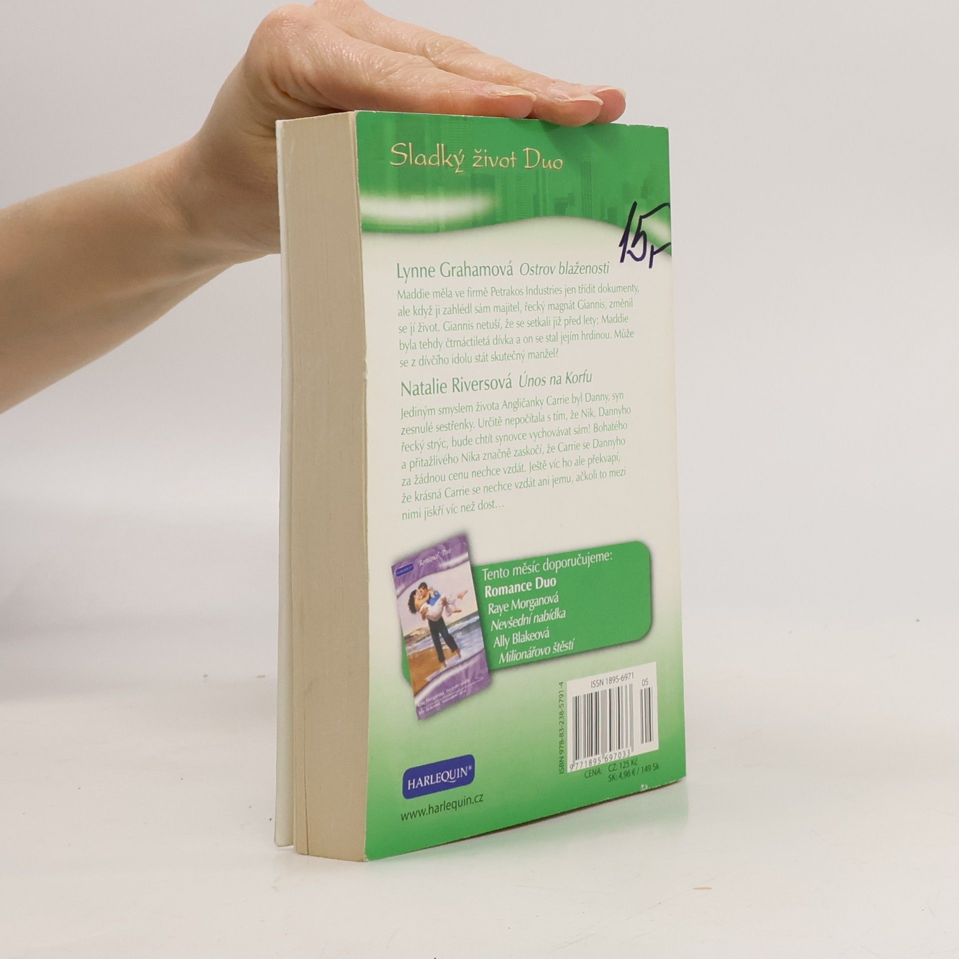 Ostrov blaženosti Maddie měla ve firmě Petrakos Industries jen třídit dokumenty, ale když ji zahlédl sám majitel, řecký magnát Giannis, změnil se jí život. Giannis netuší, že se setkali již před lety; Maddie byla tehdy čtrnáctiletá dívka a on se stal jejím hrdinou. Může se z dívčího idolu stát skutečný manžel? Únos na Korfu Jediným smyslem života Angličanky Carrie byl Danny, syn zesnulé sestřenky. Určitě nepočítala s tím, že Nik, Dannyho řecký strýc, bude chtít synovce vychovávat sám! Bohatého a přitažlivého Nika značně zaskočí, že Carrie se Dannyho za žádnou cenu nechce vzdát. Ještě víc ho ale překvapí, že krásná Carrie se nechce vzdát ani jemu, ačkoli to mezi nimi jiskří víc než dost…