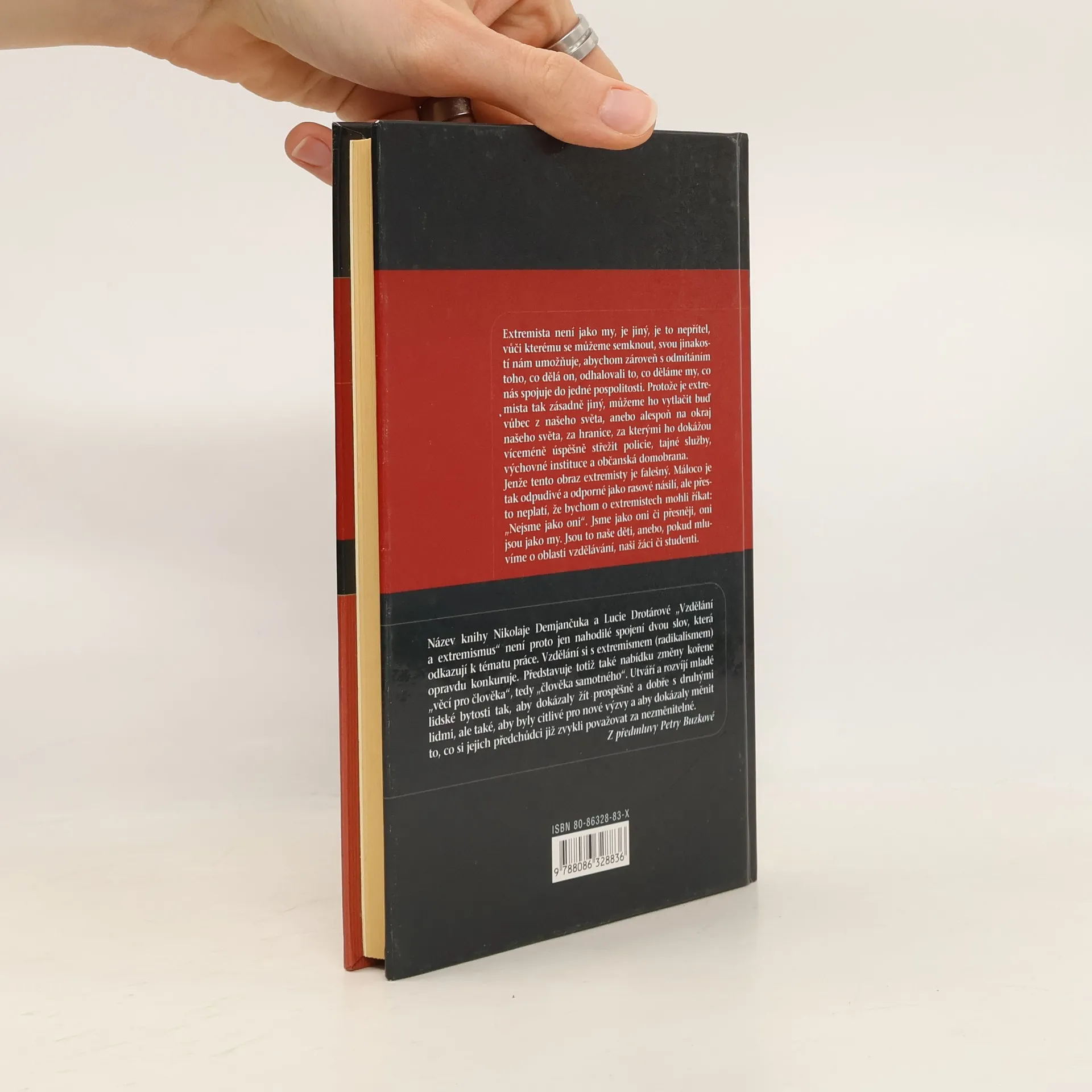 Název knihy Nikolaje Demjančuka a Lucie Drotárové "Vzdělání a extremismus" není proto jen nahodilé spojení dvou slov, která odkazují k tématu práce. Vzdělání si s extremismem (radikalismem) opravdu konkuruje. Představuje totiž také nabídku změny kořene "věcí pro člověka", tedy "člověka samotného". Utváří a rozvíjí mladé lidské bytosti tak, aby dokázaly žít prospěšně a dobře s druhými lidmi, ale také, aby byly citlivé pro nové výzvy a aby dokázaly měnit to, co si jejich předchůdci již zvykli považovat za nezměnitelné. (Z předmluvy Petry Buzkové)