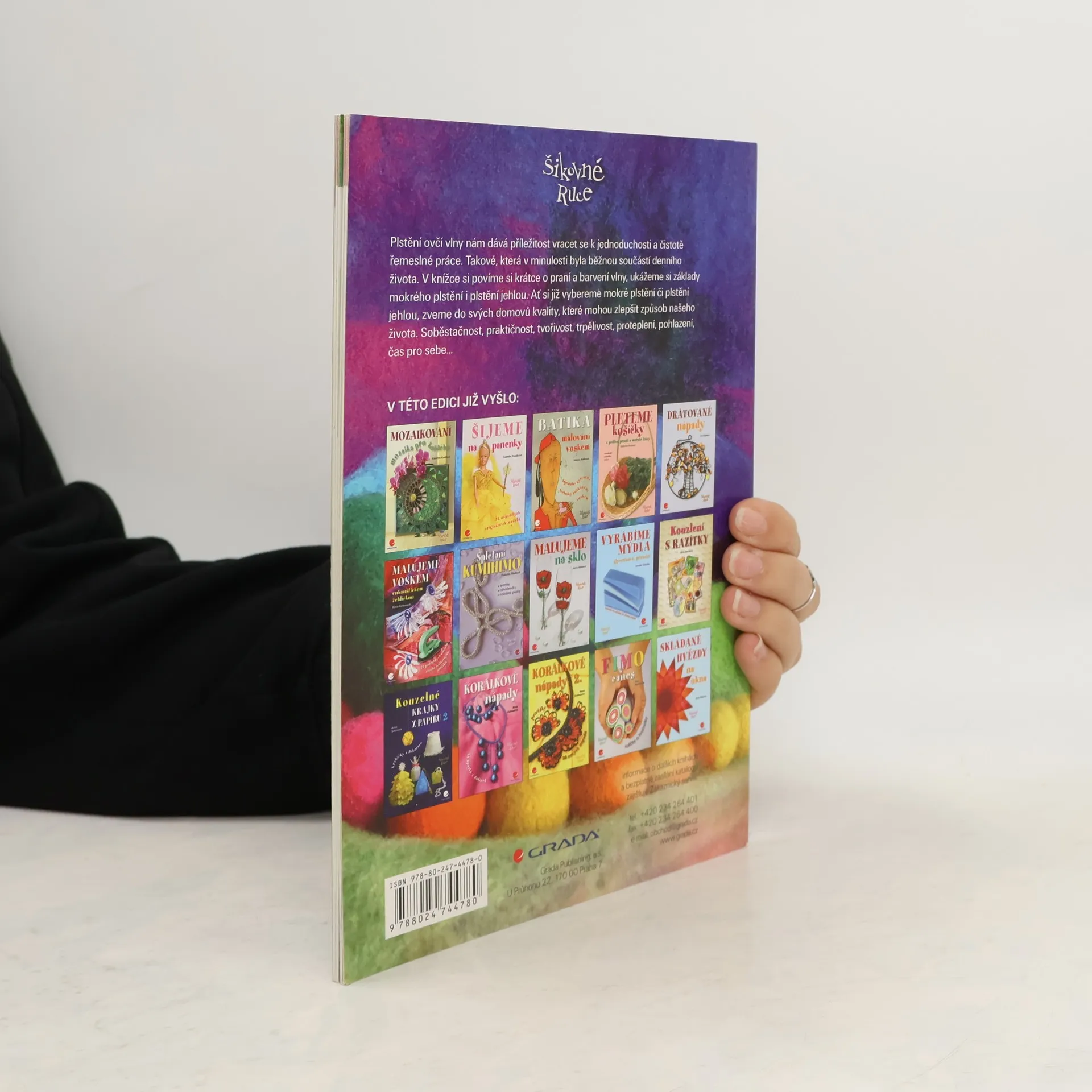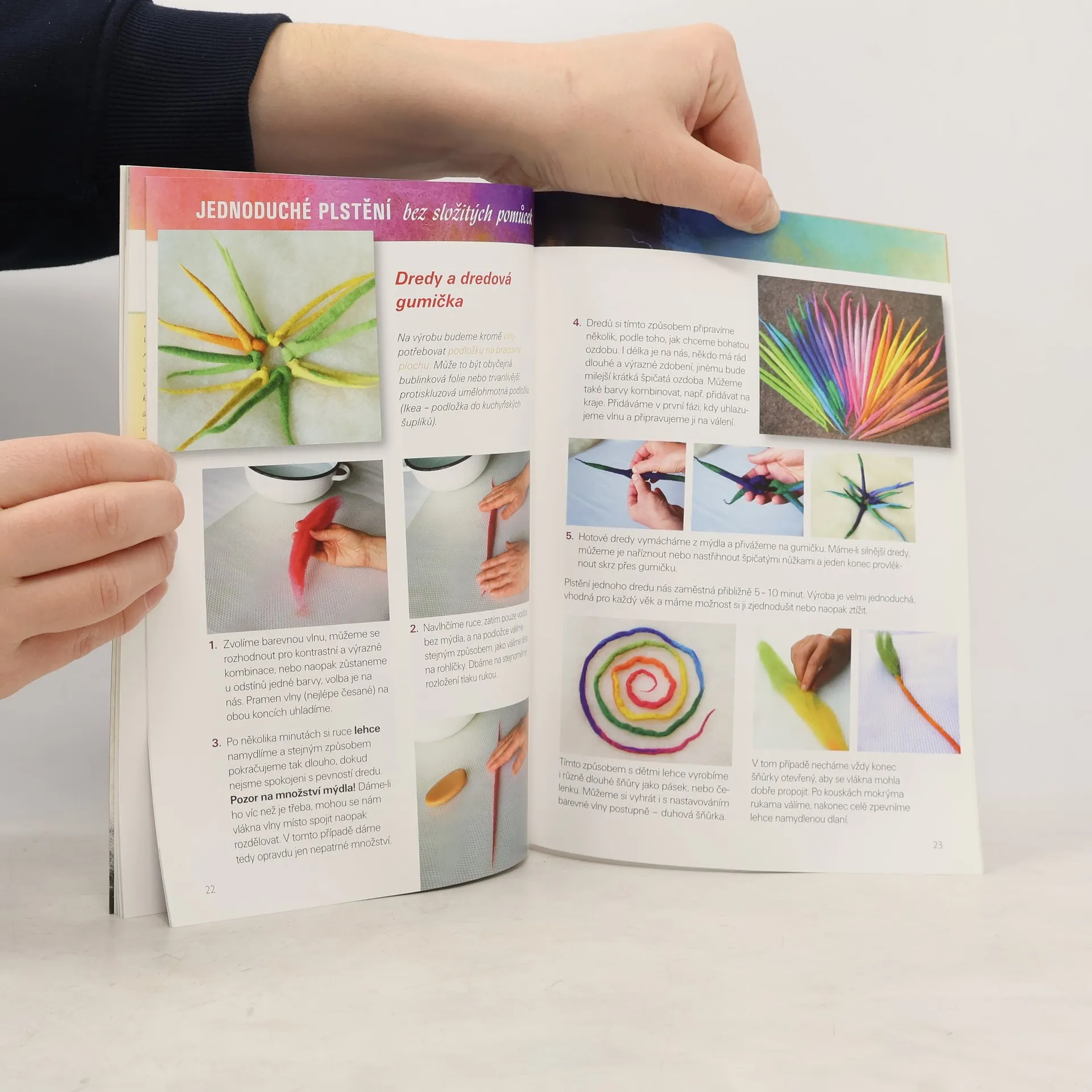 Zkušená autorka publikací o výtvarných technikách a zejména zpracování ovčí vlny se v úvodu svojí další knížky krátce podívá do historie zpracovávání ovčí vlny, jednu kapitolu věnuje přípravě a způsobu praní ovčí vlny. Pro většinu uvedených námětů zvolila jednoduché formy plstění bez složitých pomůcek. Ukazuje také základy techniky mokrého plstění a jednoduché tradiční vzorování a postupně přechází k novějšímu způsobu plstění jehlou. Podle přehledných návodů si pak každý může snadno vytvořit míček, kuličky, spirálky dredy, náramky, motýla, vílu, medvídky nebo praktické podložky na židli či vlněné vložky do bot.