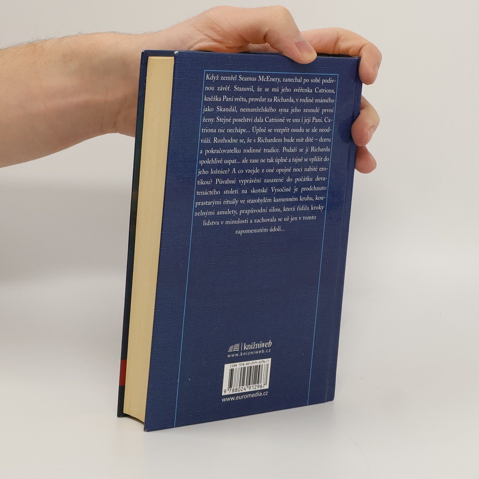 Třetí kniha série Cynster. Když zemřel Seamus McEnery, zanechal po sobě podivnou závěť. Stanovil, že se má jeho svěřenka Catriona, kněžka Paní světa, provdat za Richarda, v rodině známého jako Skandál, nemanželského syna jeho zesnulé první ženy. Stejné poselství dala Catrioně ve snu i její Paní. Catriona nic nechápe... Úplně se vzepřít osudu se ale neodváží. Rozhodne se, že s Richardem bude mít dítě - dceru a pokračovatelku rodinné tradice. Podaří se jí Richarda spolehlivě uspat... ale zase ne tak úplně a tajně se vplížit do jeho ložnice? A co vzejde z oné opojné noci nabité erotikou? Půvabné vyprávění zasazené do počátku devatenáctého století na skotské Vysočině je prodchnuto prastarými rituály ve starobylém kamenném kruhu, kouzelnými amulety, prapůvodní silou, která řídila kroky lidstva v minulosti a zachovala se už jen v tomto zapomenutém údolí...