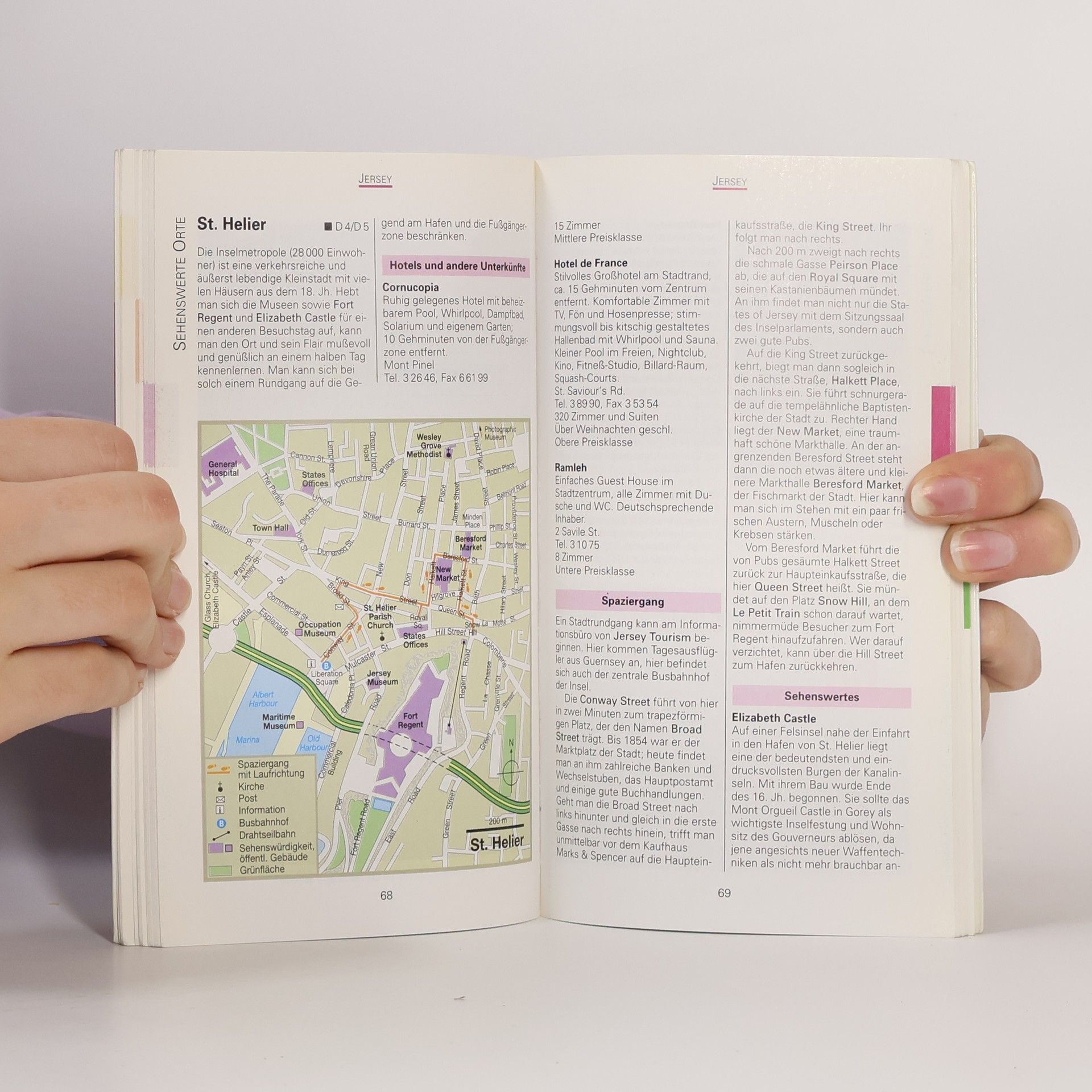 Mehrfach ausgezeichnet als bester Kompakt-Reiseführer: 1. Platz ITB BuchAward! Jetzt neu mit herausnehmbarer Straßenkarte zusätzlich zum Kartenatlas. Ebenfalls neu: das MERIAN-Quiz. Gewinnen Sie Monat für Monat attraktive Preise. Wilde Steilküsten, Blütenmeere und grüne Täler verleihen der Landschaft auf den Kanalinseln ihren herbschönen Charakter. Erleben Sie zu Fuß die verträumten Küstenwege Jerseys, bummeln Sie durch St. Peter Port, die stimmungsvolle Hauptstadt Guernseys, und erkunden Sie mit dem Rad Sark und Alderney - jede der Inseln lockt mit ihren eigenen Reizen und vielfältigen Naturerlebnissen. MERIAN live! Kanalinseln Jersey Guernsey informiert Sie über sehenswerte Kulturstätten der Exilheimat Victor Hugos, Feste und Feiern und andere Freizeitaktivitäten. Darüber hinaus enthalten die Rubriken MERIAN-TopTen und MERIAN-Tipps Hinweise zu den besten Unterkünften - ob Sie die gemütlichen privaten „guesthouses“ mit Himmelbett, Blümchenmustern und deftigem englischen Frühstück bevorzugen oder ein luxuriöses Hotel. Für eine schnelle Orientierung zu Wasser und zu Land sorgen der umfangreiche Kartenatlas in moderner MERIAN-Kartographie und zahlreiche Detailkarten. Der Kartenatlas ist inhaltlich eng mit den einzelnen Rubriken verbunden. Ca. 60 Farbfotos, 6 Seiten Kartenatlas, 1 Übersichtskarte, 2 Stadtpläne, 4 Detailpläne, Sprachführer und Essdolmetscher sowie MERIAN-TopTen und MERIAN-Tipps.