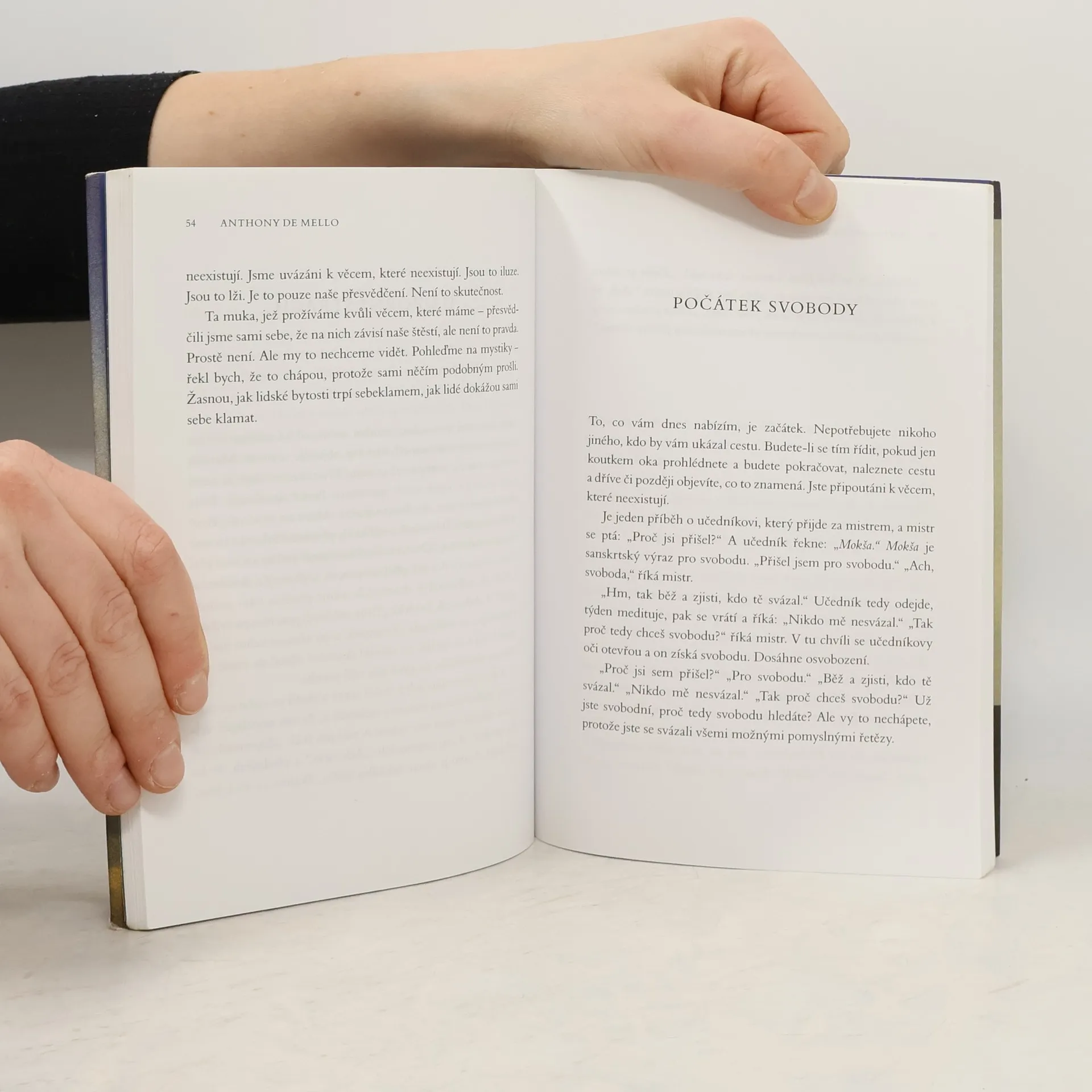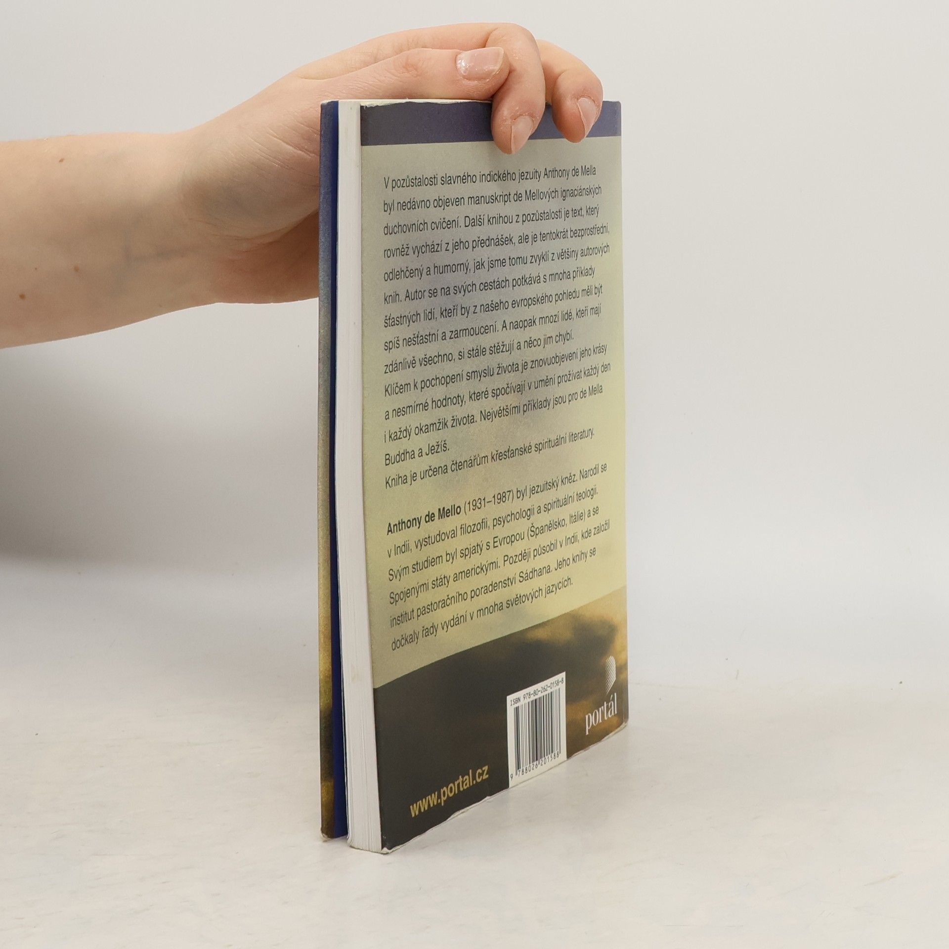 V pozůstalosti slavného indického jezuity Anthony de Mella byla nedávno objevena manuskript de Mellových ignaciánských duchovních cvičení. Dalším knihou z pozůstalosti je text, který rovněž vychází z jeho přednášek, ale je tentokrát bezprostřední, odlehčený a humorný, jak jsme tomu zvyklí z většiny autorových knih. Autor se na svých cestách potkává s mnoha příklady šťastných lidí, kteří by z našeho evropského pohledu měli být spíš nešťastní a zarmoucení. A naopak mnozí lidé, kteří mají zdánlivě všechno, si stále stěžují a něco jim chybí. Klíčem k pochopení smyslu života je znovuobjevení jeho krásy a nesmírné hodnoty, které spočívají v umění prožívat každý den i každý okamžik života naplněni Bohem. Jedním z vrcholných příkladů jsou pro de Mella Buddha a Ježíš. Kniha je určena čtenářům křesťanské spirituální literatury.