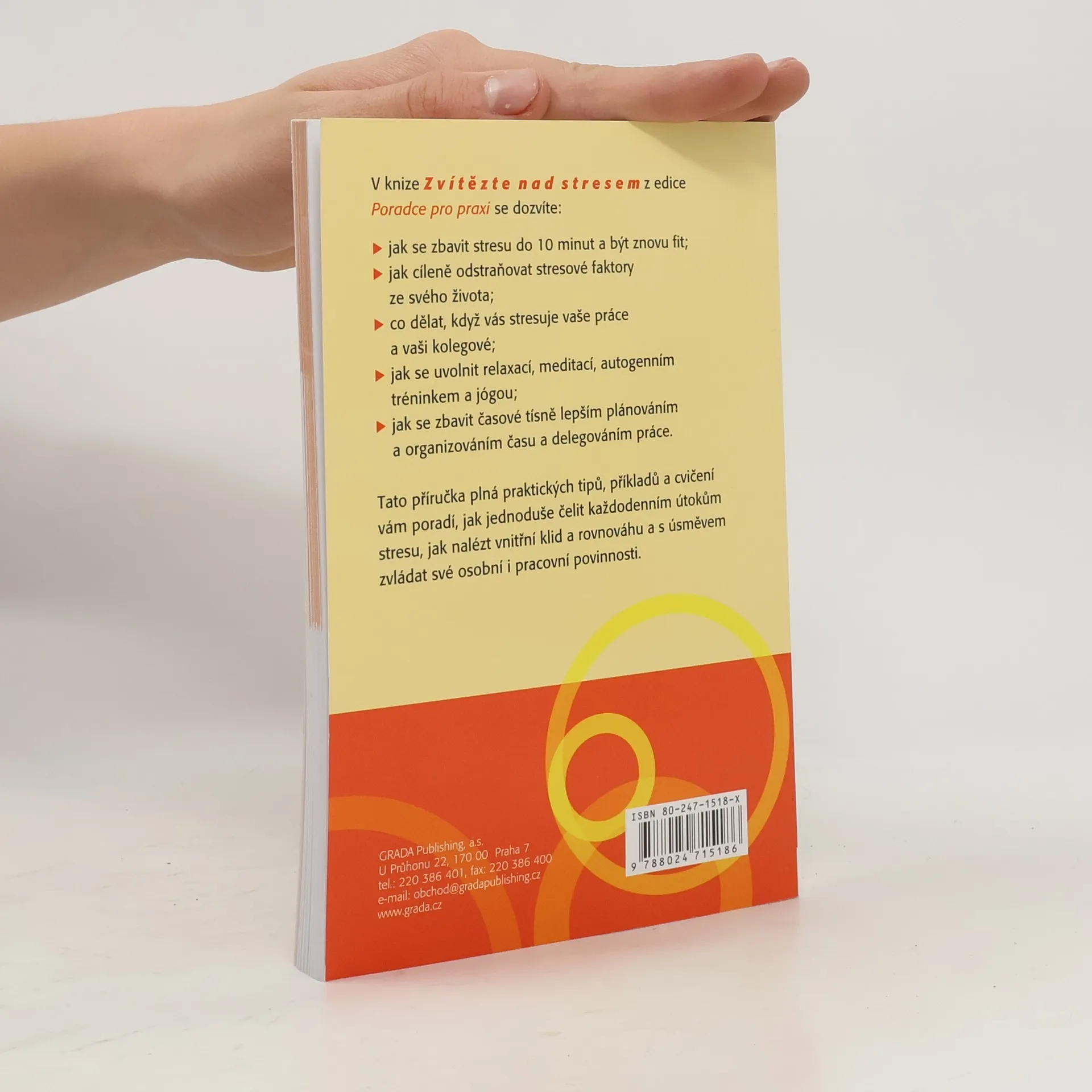 Tato příručka plná praktických tipů, příkladů a cvičení vám poradí, jak jednoduše čelit každodennímu útoku stresu, jak nalézt vnitřní klid a rovnováhu a s úsměvem zvládat své osobní i pracovní povinnosti. Kapitoly: Stres - téměř každodenní průvodce, Okamžitá pomoc proti stresu, Cílené odstraňování stresových faktorů, Aktivní uvolnění pro lepší pocit.... celý text
