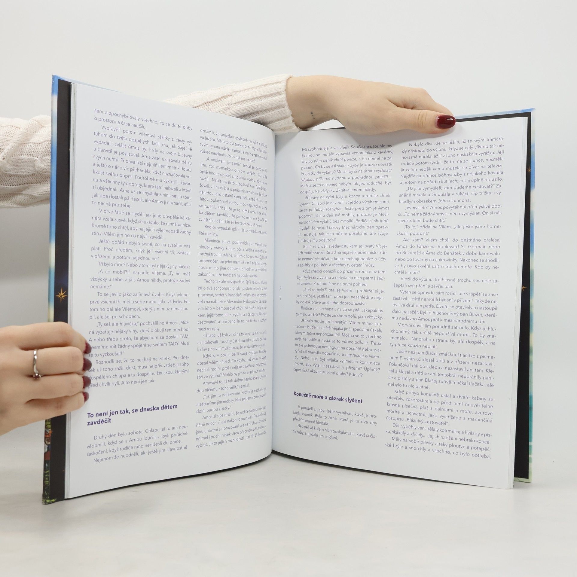 Příběh Cesty sv. Vít-ahem je určen dětem, ale i vnímavým dospělým, kteří pochopili, jaké místo má v životě lidském imaginace. Dva bratři /Amos a Vilém/ díky výtahu v jejich domě, který se ukáže být kouzelný, cestují do fantastických míst. Chlapci výtah pojmenují svatý Vít, aniž by tušili, co tím způsobí. Mohlo to být celé jen úžasné dobrodružství, kdyby se všechno nečekaně nezkomplikovalo. Na jedné takové cestě do „jiného světa” se ztratí jejich kamarádka Arna Marná a nevrátí se zpátky do reality. Je potřeba ji najít! Ale kde hledat, pokud se ztratila ve snu? A nebo to nebyl sen? Možná že kouzelný výtah-Vít tady nebyl jen pro zábavu. Možná se měli něco dozvědět. Něco důležitého. Ale co?