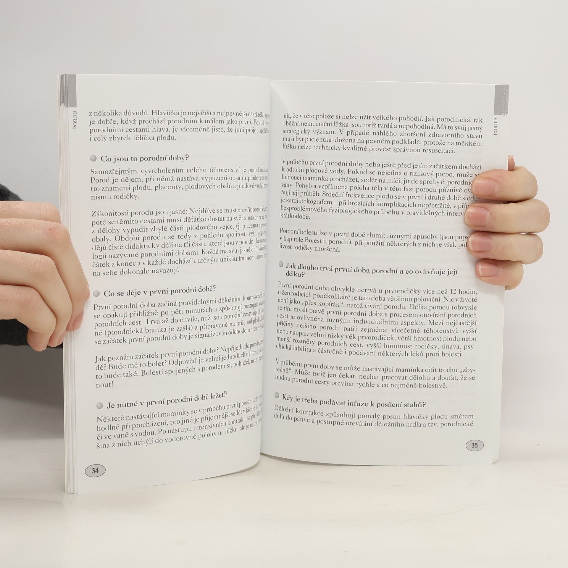 Kniha předního českého odborníka budoucí mamince srozumitelně a přehledně předá oblíbenou formou otázek a odpovědí veškeré potřebné informace o porodu. Těhotná žena se díky autorovým radám dokonale připraví na porod svého dítěte. Nejpodstatnější část tvoří osvětlení průběhu porodu, včetně rozčlenění na jednotlivé porodní doby, publikace také vyzdvihne důležitost výběru porodnice, přítomnosti partnera apod.