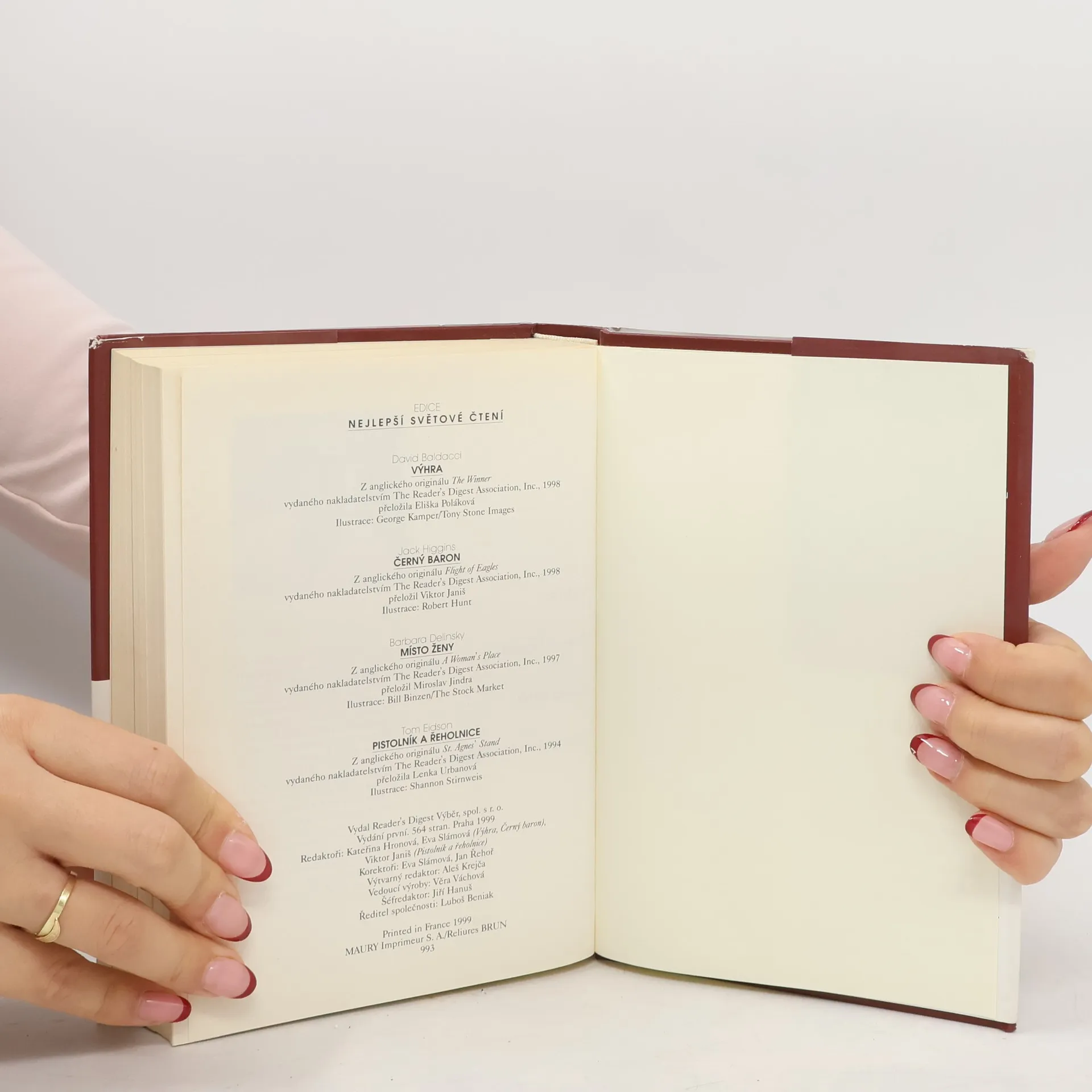 Svazek obsahuje čtyři vybrané romány od současných úspěšných angloamerických autorů ve zkrácené verzi. Tento svazek obsahuje tyto tituly: Baldacci, David: Výhra Higgins, Jack: Černý baron Delinsky, Barbara: Místo ženy Edison, Tom: Pistolník a řeholnice