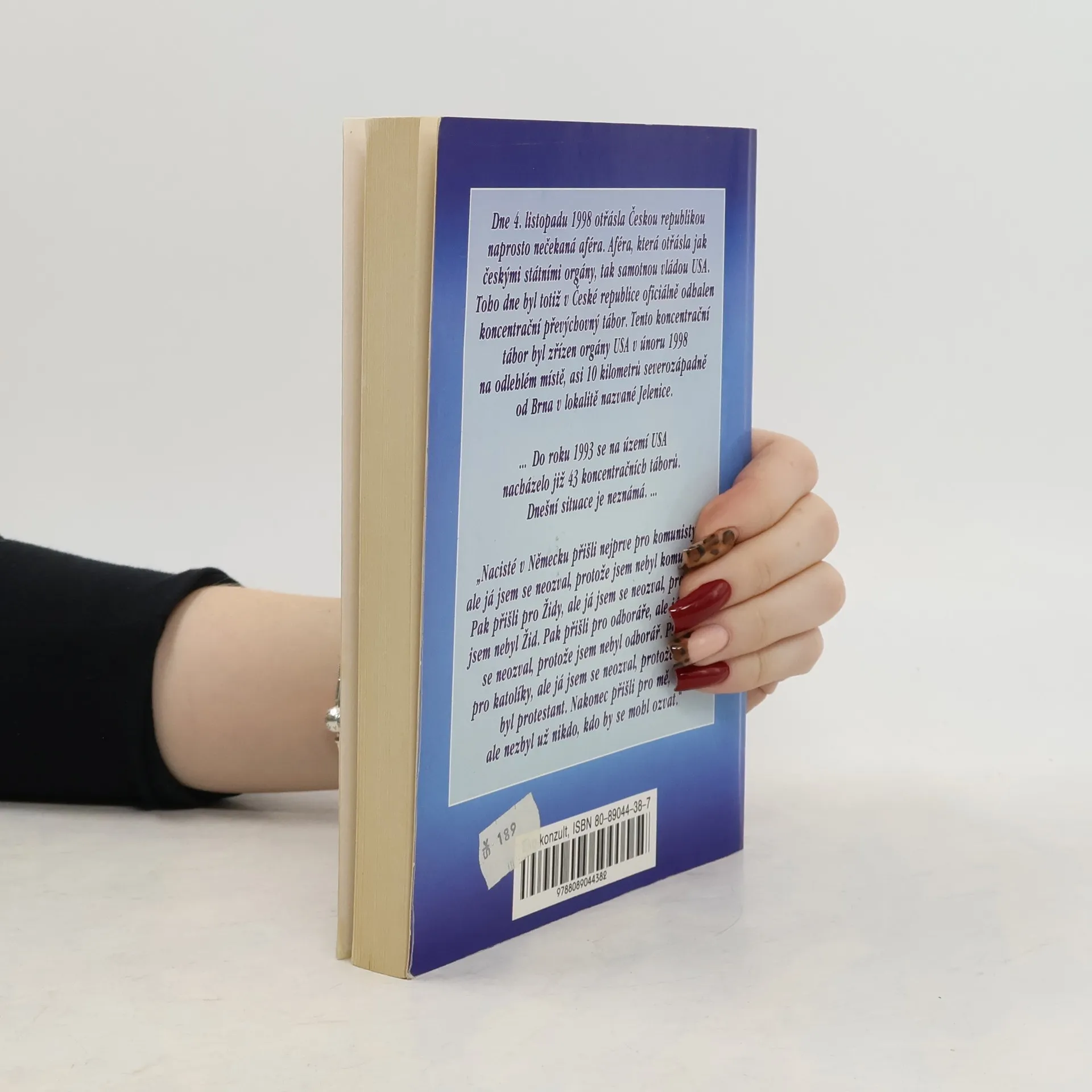 Dne 4. listopadu 1998 otřásla Českou republikou naprosto nečekaná aféra. Aféra, která otřásla jak českými státními orgány, tak samotnou vládou USA. Toho dne byl totiž v České republice oficiálně odhalen koncentrační převýchovný tábor. Tento koncentrační tábor byl zřízen orgány USA v únoru 1998 na odlehlém místě, asi 10 kilometrů severozápadně od Brna v lokalitě nazvané Jelenice. Do roku 1993 se na území USA nacházelo již 43 koncentračních táborů. Dnešní situace je neznáma. "Nacisté v Německu přišli nejprve pro komunisty, ale já jsem se neozval, protože jsem nebyl komunista. Pak přišli pro Židy, ale já jsem se neozval, protože jsem nebyl Žid. Pak přišli pro odboráře, ale já jsem se neozval, protože jsem nebyl odborář. Přišli pro katolíky, ale já jsem se neozval, protože jsem byl protestant. Nakonec přišli pro mě, ale nezbyl už nikdo, kdo by se mohl ozvat."