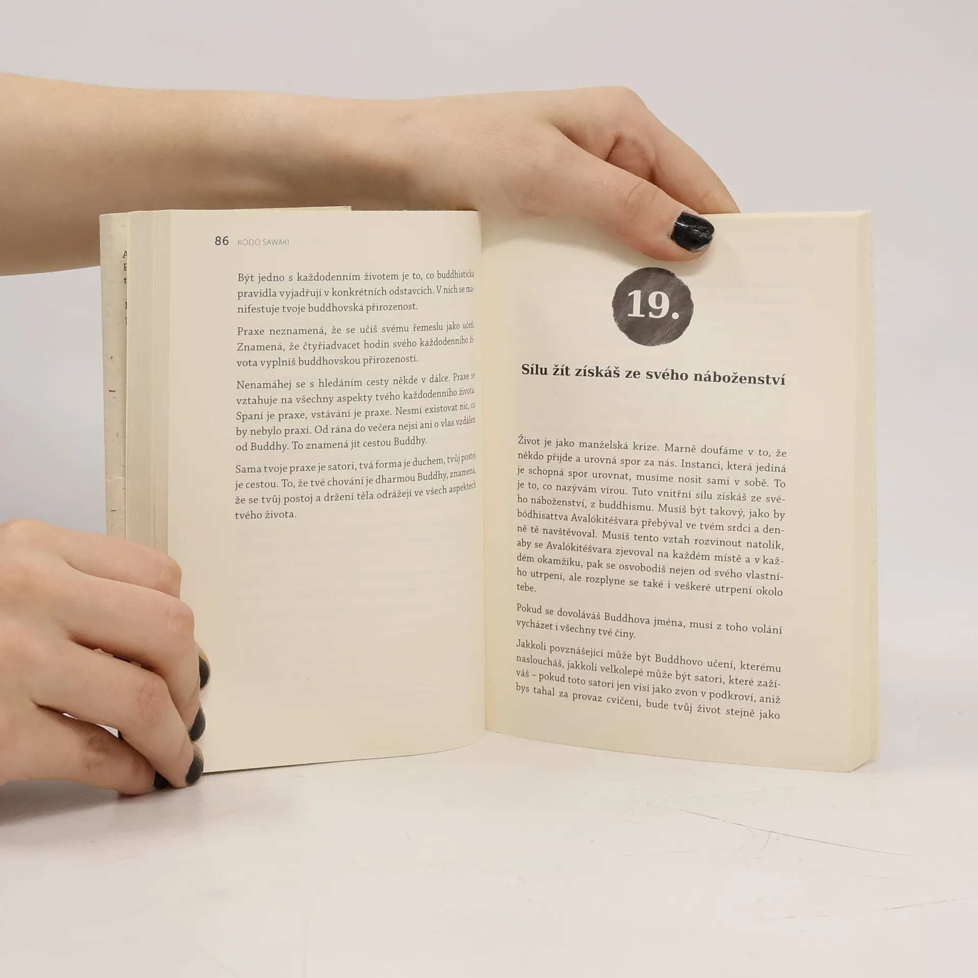 Chcete vědět, co je zen? Přečtěte si tuto vzácnou knihu. Pokud po jejím přečtení nic nepochopíte, zkuste ji znovu. Možná vás inspiruje k tomu, abyste se posadili a v klidu dýchali. V 60. letech dorazila na Západ vlna zenového buddhismu, především díky překladům autorů jako D. T. Suzuki. Zen se stal populárním a jeho estetika pronikla do designu a interiérů. Od té doby uplynulo 60 let a módní vlny orientální duchovnosti se měnily. Sawakiho kniha nám připomíná, co je na zenu přitažlivé: je přímočarý a jde „rovnou na věc“, což západní člověk, přetížený myšlenkami, hledá. Sawaki, významný zenový učitel linie Sótó, žil mezi lety 1880 a 1965 a byl známý nejen zasvěcencům, ale i široké veřejnosti díky svému charismatu a šíření zazenu. Důraz kladl na intenzivní praxi prostého sezení, což vedlo k zavedení týdenních „seššinů“ v jeho klášteře Antaidži, kde se denně konalo čtrnáct padesátiminutových zazenů. Jeho promluvy k žákům byly zapisovány a daly vzniknout japonskému originálu této knihy. Kvalitní literatura o zen-buddhismu je vzácná, zejména v češtině. Věříme, že vás živý a osobitý text Kódó Sawakiho zaujme a inspiruje.