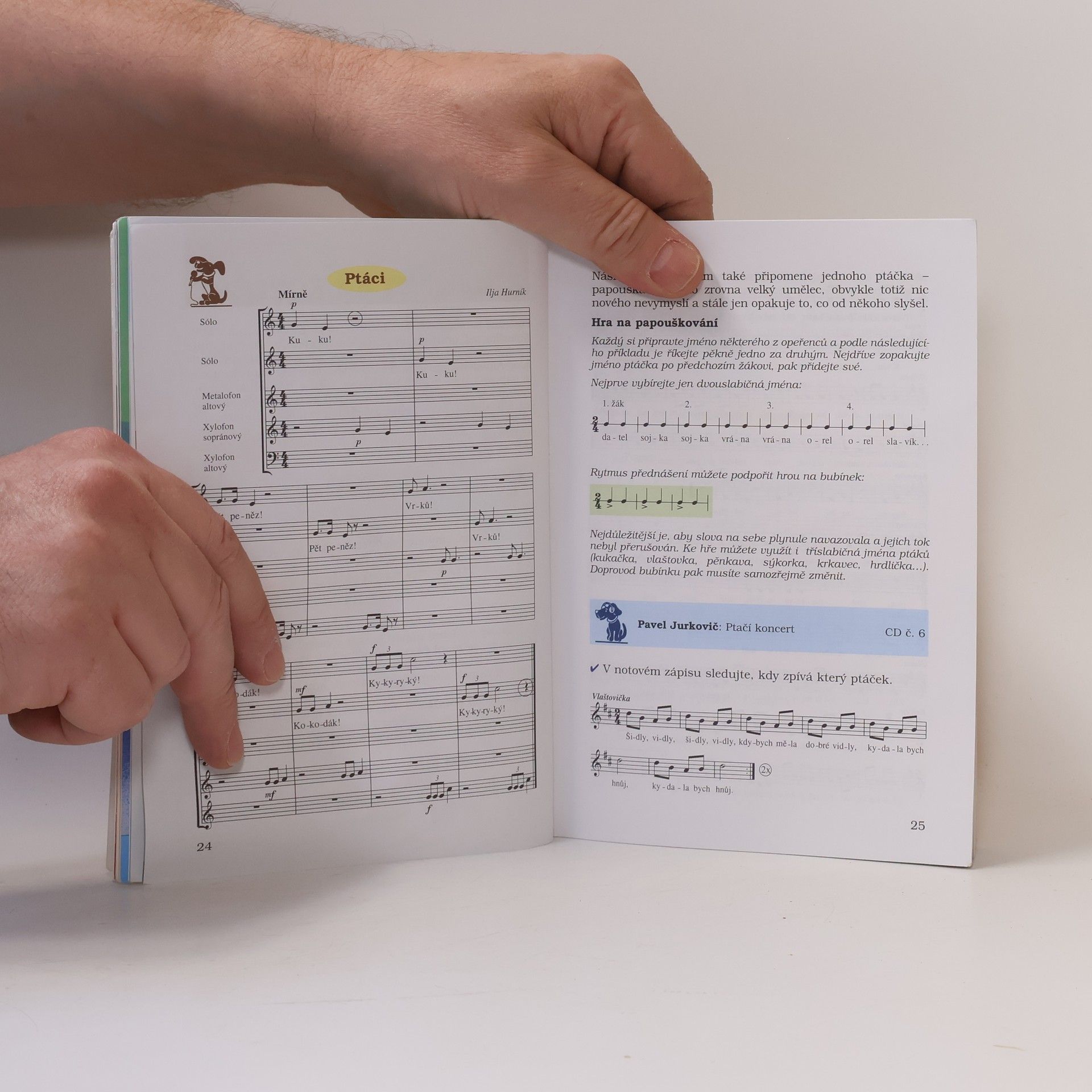 Ilustrovaná učebnice Marie Liškové a Lukáše Hurníka obsahuje čtyřicet známých dětských písniček, např. Beskyde, Beskyde, Běží liška k Táboru, Na tý louce zelený, Vyletěla holubička a další. Každá písnička je opatřena melodickou linkou, textem a akordickými značkami. Učebnice pojednává rovněž o základních hudebních pojmech, stručně představuje některé hudební nástroje a uvádí několik důležitých poznatků o hlasové výchově. Publikace je doplněna abecedním seznamem písní a seznamem poslechových skladeb.