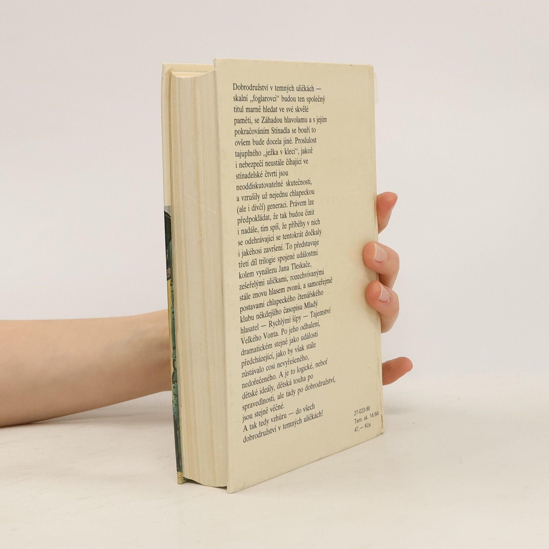 Dobrodružství v temných uličkách - skalní "foglarovci" budou ten společný titul marně hledat ve své skvělé paměti, se Záhadou hlavolamu a s jejím pokračováním Stínadla se bouří to ovšem bude docela jiné. Proslulost tajuplného "ježka v kleci", jakož i nebezpečí neustále číhající vestínadelské čtvrti jsou neoddiskutovatelné skutečnosti, a vzrušily už nejednu chlapeckou (ale i dívčí) generaci. Právem lze předpokládat, že tak budou činit i nadále, tím spíš, že příběhy v nich se odehrávající se tentokrát dočkaly i jakéhosi završení.To představuje třetí díl trilogie spojené událostmi kolem vynálezu Jana Tleskače, zešeřelými uličkami, rozechvívanými stále znovu hlasem zvonů, a samozřejmě postavami chlapeckého čtenářského klubu někdejšího časopisu Mladý hlasatel - Rychlými šípy - Tajemství Velkého Vonta. Po jeho odhalení, dramatickém stejně jako události předcházející, jako by však stále zůstávalo cosi nevyřešeného, nedořečeného. A je to logické, neboť dětské ideály, dětská touha po spravedlnosti, ale tady po dobrodružství, jsou stejně věčné. A tak tedy vzhůru - do vše dobrodružství v temných uličkách! 1/ Záhada hlavolamu 2/ Stínadla se bouří 3/ Tajemství Velké Vonta