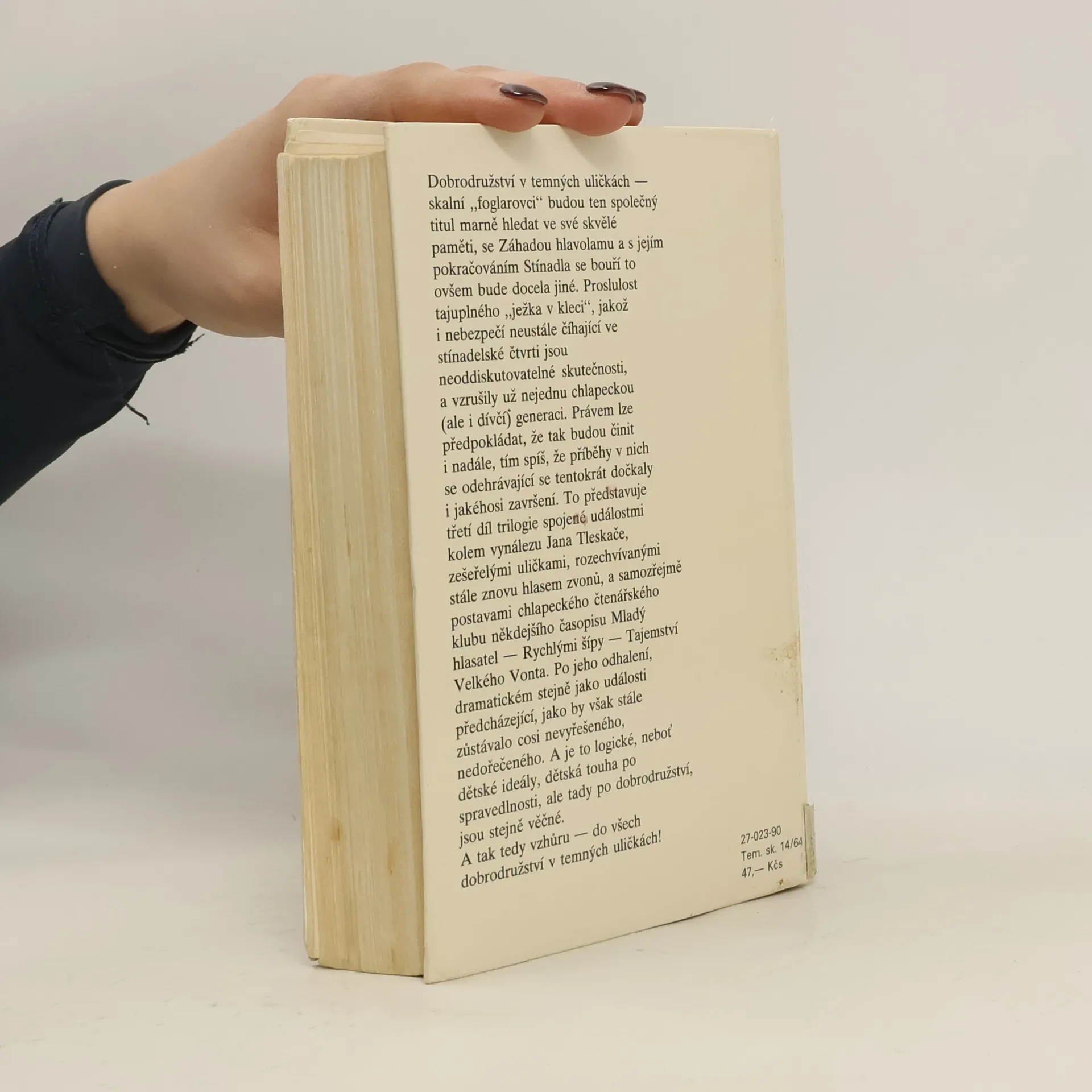 Dobrodružství v temných uličkách - skalní "foglarovci" budou ten společný titul marně hledat ve své skvělé paměti, se Záhadou hlavolamu a s jejím pokračováním Stínadla se bouří to ovšem bude docela jiné. Proslulost tajuplného "ježka v kleci", jakož i nebezpečí neustále číhající vestínadelské čtvrti jsou neoddiskutovatelné skutečnosti, a vzrušily už nejednu chlapeckou (ale i dívčí) generaci. Právem lze předpokládat, že tak budou činit i nadále, tím spíš, že příběhy v nich se odehrávající se tentokrát dočkaly i jakéhosi završení.To představuje třetí díl trilogie spojené událostmi kolem vynálezu Jana Tleskače, zešeřelými uličkami, rozechvívanými stále znovu hlasem zvonů, a samozřejmě postavami chlapeckého čtenářského klubu někdejšího časopisu Mladý hlasatel - Rychlými šípy - Tajemství Velkého Vonta. Po jeho odhalení, dramatickém stejně jako události předcházející, jako by však stále zůstávalo cosi nevyřešeného, nedořečeného. A je to logické, neboť dětské ideály, dětská touha po spravedlnosti, ale tady po dobrodružství, jsou stejně věčné. A tak tedy vzhůru - do vše dobrodružství v temných uličkách! 1/ Záhada hlavolamu 2/ Stínadla se bouří 3/ Tajemství Velké Vonta