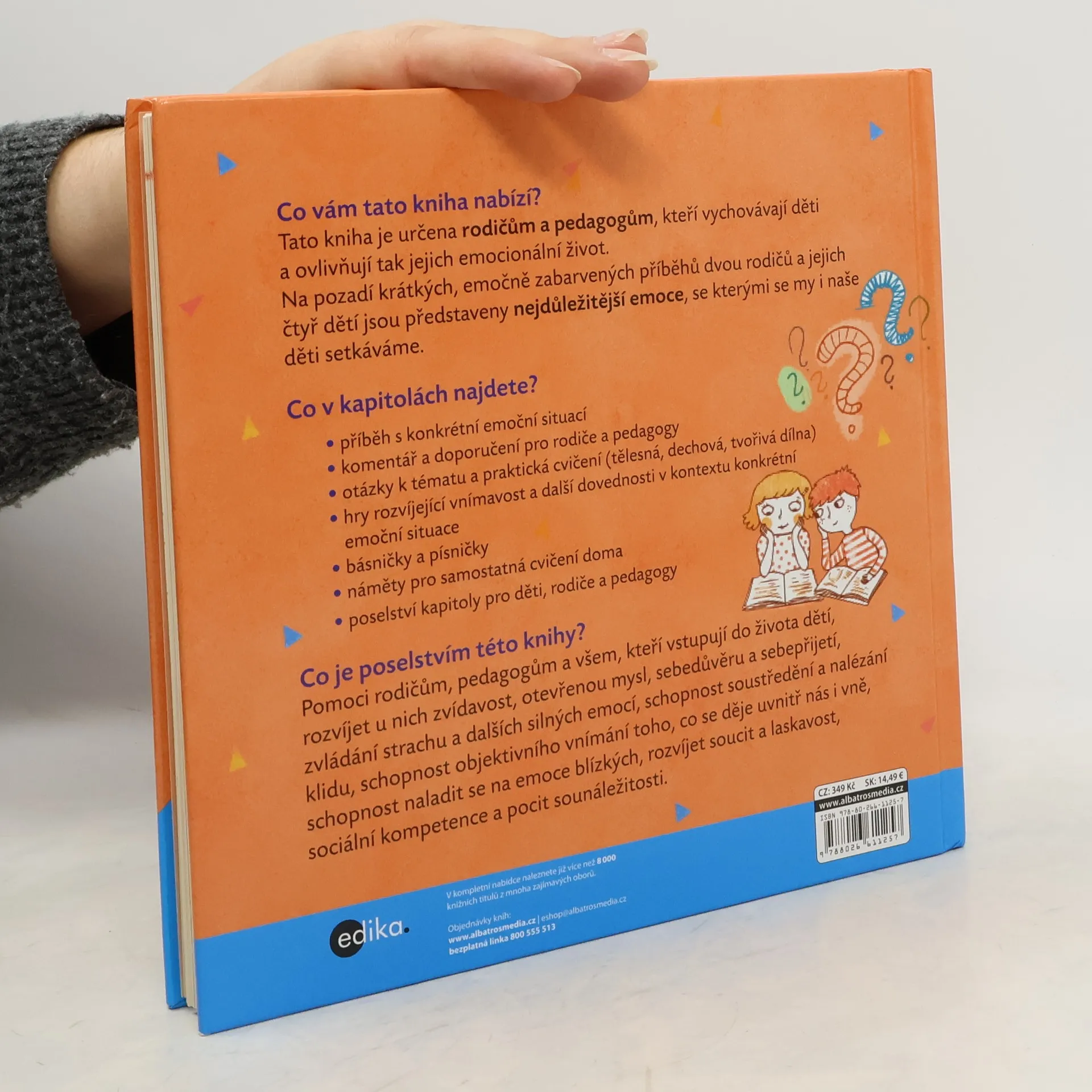 Učte děti vnímat a tvořivě pracovat s jejich vlastními pocity. Co vám tato kniha nabízí? Tato kniha je určena rodičům a pedagogům, kteří vychovávají děti a ovlivňují tak jejich emocionální život. Na pozadí krátkých, emočně zabarvených příběhů dvou rodičů a jejich čtyř dětí jsou představeny nejdůležitější emoce, se kterými se my i naše děti setkáváme. Co v kapitolách najdete? • příběh s konkrétní emoční situací • komentář a doporučení pro rodiče a pedagogy • otázky k tématu a praktická cvičení (tělesná, dechová, tvořivá dílna) • hry rozvíjející vnímavost a další dovednosti v kontextu konkrétní emoční situace • básničky a písničky • náměty pro samostatná cvičení doma • poselství kapitoly pro děti, rodiče a pedagogy Co je poselstvím této knihy? Pomoci rodičům, pedagogům a všem, kteří vstupují do života dětí, rozvíjet u nich zvídavost, otevřenou mysl, sebedůvěru a sebepřijetí, zvládání strachu a dalších silných emocí, schopnost soustředění a nalézání klidu, schopnost objektivního vnímání toho, co se děje uvnitř nás i vně, schopnost naladit se na emoce blízkých, rozvíjet soucit a laskavost, sociální kompetence a pocit sounáležitosti.