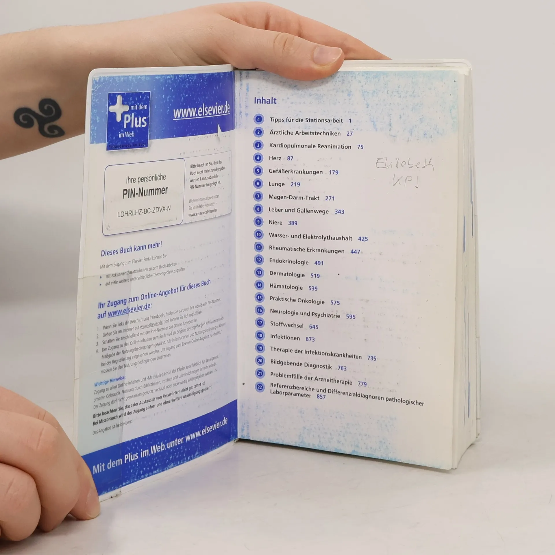 Alle Schwerpunkte der Inneren Medizin auf den Punkt gebracht – sowie das Wesentliche aus den Randgebieten auf einen Blick. Neu in der 11. Auflage: Erweitert: Tipps für die Stationsarbeit Eigenes Kapitel zur kardiopulmonalen Reanimation Stark überarbeitet: Hämatologie, Pneumologie, Infektiologie Viele neue Medikamente und Therapieverfahren Dieses Buch hat mehr! Mit dem Code im Buch haben Sie ab Aktivierung 12 Monate kostenlosen Online-Zugriff auf den Buchinhalt und die Abbildungen. Dauerhaft erhalten Sie zusätzlich - 6 Monate kostenloser Zugang zu DoctorConsult. de, dem Online-Nachschlagewerk für Ärzte • Viele Informationen und Links für junge Ärzte • Kommentierte Echokardiographiebefunde zu Herzerkrankungen • Zusatzinformationen aus anderen Elsevier-Titeln zum Thema • Tipps und Bewertungen zur medizinischen Online-Recherche (Angebot freibleibend)