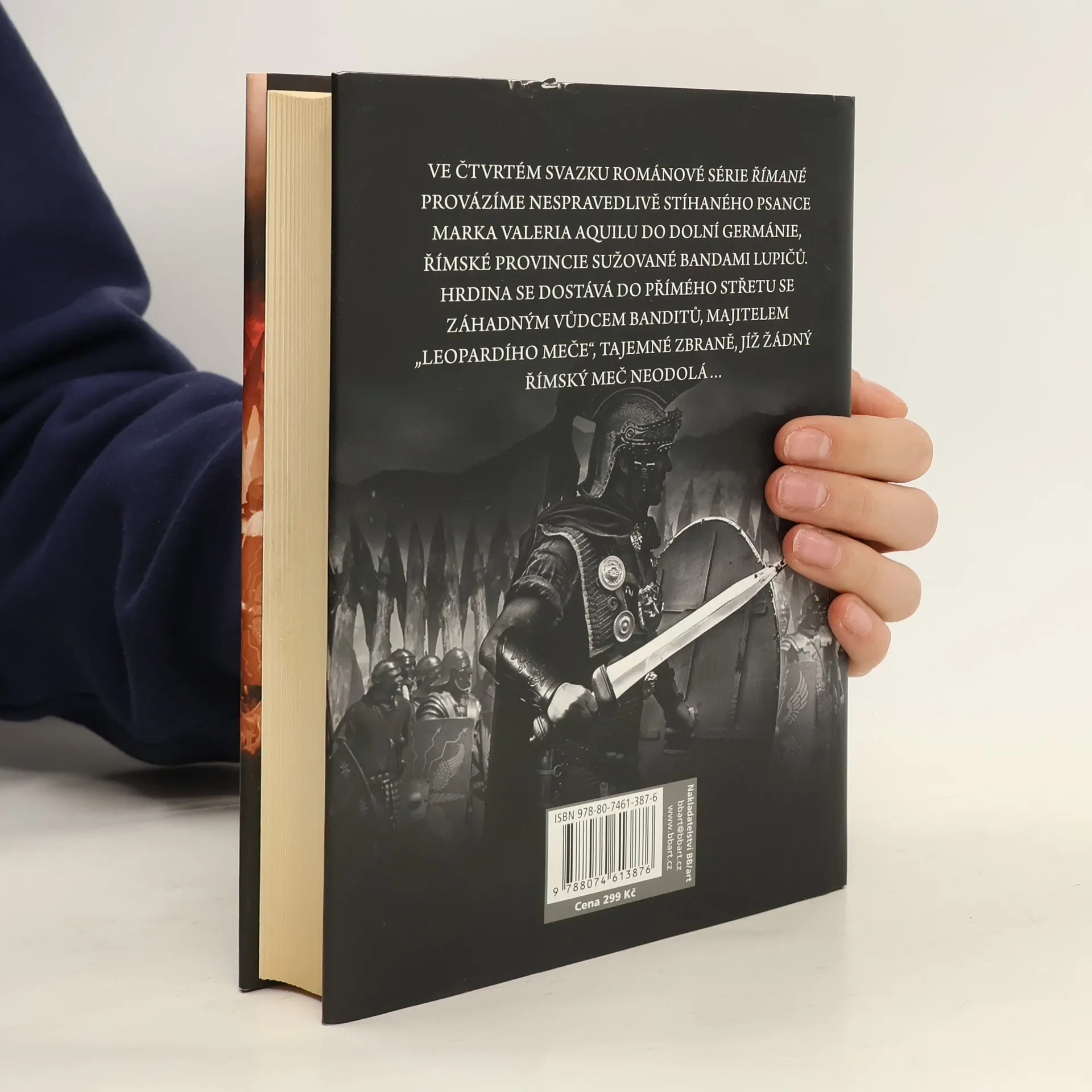 Leopardí meč je už čtvrtým volným pokračováním úspěšné románové série Římané. Ústředního románového hrdinu, nespravedlivě stíhaného psance Marka Valeria Aquilu tentokrát provázíme do Dolní Germánie, římské provincie sužované bandami lupičů. Aquila, který se pod falešným jménem Corvus skrývá v řadách římského pomocného vojska, se v tomto poutavém historickém thrilleru dostává do přímého střetu se záhadným vůdcem banditů Obdurem, majitelem „leopardího meče“, tajemné zbraně, jíž žádný římský meč neodolá…