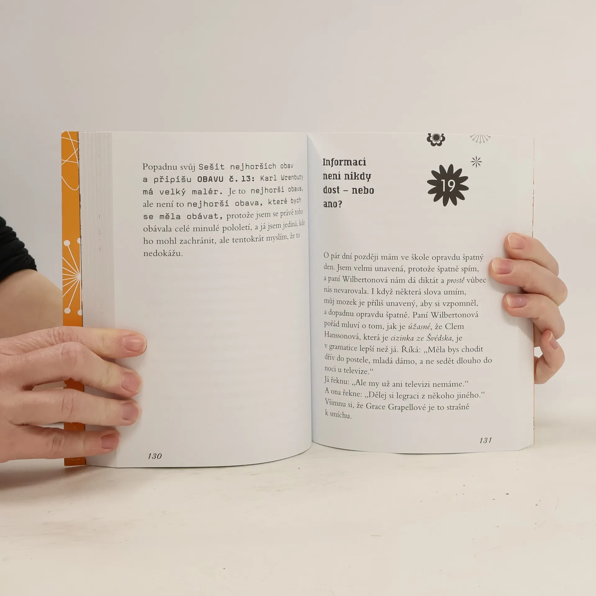 Třetí díl volné trilogie pro mladé čtenáře. Clarice Beanová si pořídí Sešit obav, a zapisuje si tam své nejhorší obavy - protože věci nejsou tak hrozné, když si uděláte seznam. Když pak ty věci vyřešíte, můžete si je odškrtnout. Bohužel obav, které si Clarice může odškrtnout, je velmi málo, zatímco složité nebo napínavé situace se na ni najednou hrnou jedna za druhou. Nejlepší Claricina kamarádka se s rodiči odstěhuje do Ameriky, a aby toho nebylo málo, ve škole se objeví nová spolužačka Clem Hanssonová, která se přistěhovala ze Švédska a kolem které se všichni - včetně Karla Wrenburyho !!! -začnou z nepochopitelných důvodů točit. Clarice je najednou strašně sama, ale o to víc může sledovat, co se kolem děje. A tak se jí podaří rozlousknout záhadu, která dlouho vypadá naprosto nevysvětlitelně.