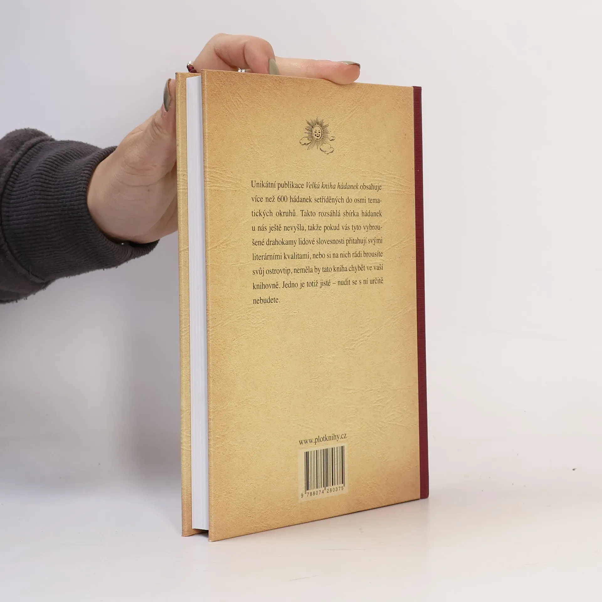 Unikátní publikace Velká kniha hádanek obsahuje více než 600 hádanek setříděných do osmi tematických okruhů. Takto rozsáhlá sbírka hádanek u nás ještě nevyšla, takže pokud vás tyto vybroušené drahokamy lidové slovesnosti přitahují svými literárními kvalitami, nebo si na nich rádi brousíte svůj ostrovtip, neměla by tato kniha chybět ve vaší knihovně. Jedno je totiž jisté – nudit se s nimi určitě nebudete.