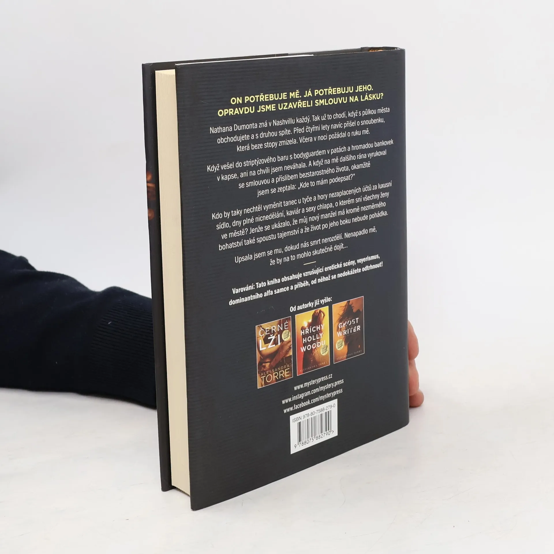 ON POTŘEBUJE MĚ. JÁ POTŘEBUJU JEHO. OPRAVDU JSME UZAVŘELI SMLOUVU NA LÁSKU? Nathana Dumonta zná v Nashvillu každý. Tak už to chodí, když s půlkou města obchodujete a s druhou spíte. Před čtyřmi lety navíc přišel o snoubenku, která beze stopy zmizela. Včera v noci požádal o ruku mě. Když vešel do striptýzového baru s bodyguardem v patách a hromadou bankovek v kapse, ani na chvíli jsem neváhala. A když na mě dalšího rána vyrukoval se smlouvou a příslibem bezstarostného života, okamžitě jsem se zeptala: „Kde to mám podepsat?“ Kdo by taky nechtěl vyměnit tanec u tyče a hory nezaplacených účtů za luxusní sídlo, dny plné nicnedělání, kaviár a sexy chlapa, o kterém sní všechny ženy ve městě? Jenže se ukázalo, že můj nový manžel má kromě nezměrného bohatství také spoustu tajemství a že život po jeho boku nebude pohádka. Upsala jsem se mu, dokud nás smrt nerozdělí. Nenapadlo mě, že by na to mohlo skutečně dojít… ___ Varování: Tato kniha obsahuje vzrušující erotické scény, voyerismus, dominantního alfa samce a příběh, od něhož se nedokážete odtrhnout!