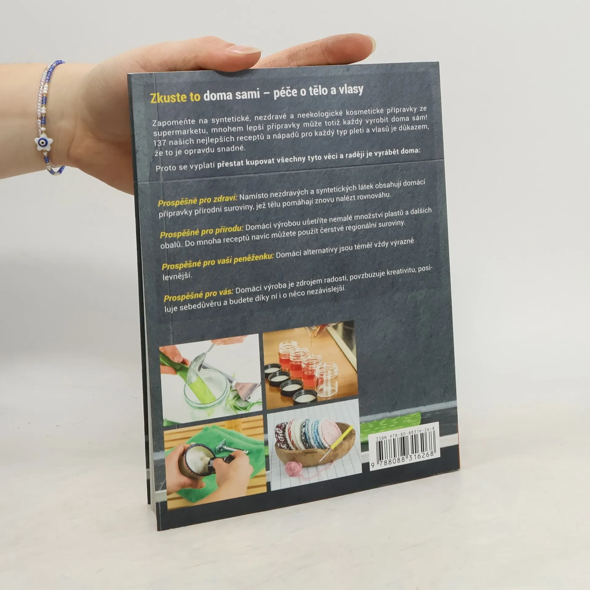 Zapomeňte na syntetické a nezdravé kosmetické přípravky ze supermarketu, protože mnohem lepší alternativy si můžete vyrobit doma! 137 receptů a nápadů pro různé typy pleti a vlasů dokazuje, že to je snadné. Domácí přípravky jsou prospěšné pro zdraví, neboť obsahují přírodní suroviny, které tělu pomáhají nalézt rovnováhu. Tímto způsobem také šetříte přírodu, protože domácí výrobou snižujete množství plastů a obalů, a můžete využít čerstvé regionální suroviny. Navíc jsou domácí alternativy většinou výrazně levnější, což je výhodné pro vaši peněženku. Výroba kosmetiky doma je také zdrojem radosti, podporuje kreativitu, posiluje sebedůvěru a zvyšuje nezávislost. V drogeriích najdete regály plné speciálních produktů, ale většina z nich obsahuje syntetické látky, které mohou vyvolávat alergie, rakovinu a další onemocnění. Tyto hotové výrobky přispívají k obrovskému množství obalového odpadu. Většinu těchto přípravků lze snadno nahradit domácími, udržitelnými alternativami. Pomocí zdravých, často jedlých přísad si můžete rychle vyrobit šampon, zubní pastu, masti, deodorant a další. Nechte se inspirovat a zlepšete svůj život!