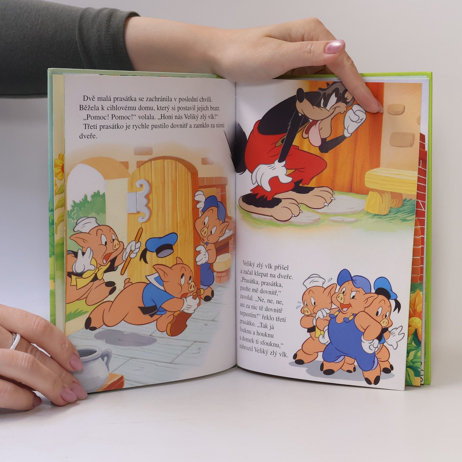 Tři malá prasátka se vydají do světa na zkušenou. Jedno si postaví domeček ze slámy, druhé ze dřeva a třetí z cihel. A pak už mohou jen zpívat, tančit a hrát na flétnu a na housličky! Anebo by se prasátka raději měla mít před někým na pozoru? Co když na ně přijde Veliký zlý vlk?