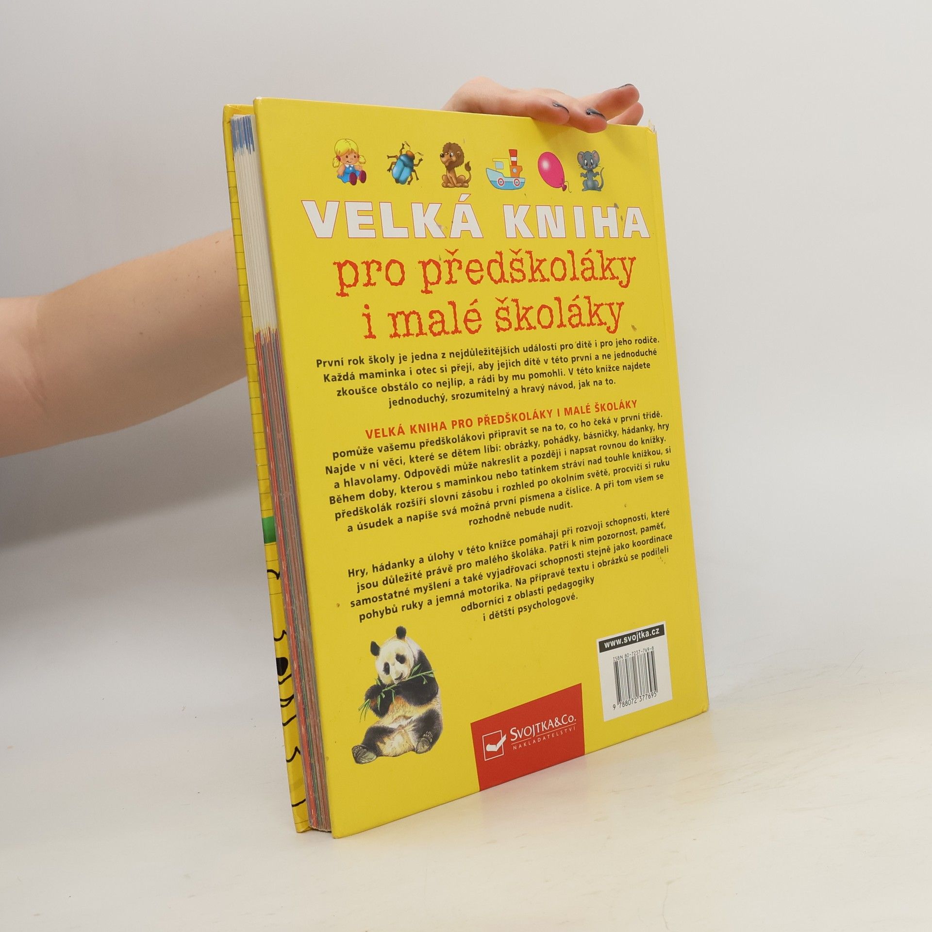 První rok školy je jedna z nejdůležitějších událostí pro dítě i pro jeho rodiče. Každá maminka a každý otec si přejí, aby jejich dítě v této první a ne jednoduché zkoušce obstálo co nejlépe, a rádi by mu pomohli. V této knížce najdete jednoduchý, srozumitelný a hravý návod, jak na to. Velká kniha pro předškoláky i malé školáky pomůže vašemu předškolákovi připravit se na to, co ho čeká v první třídě. Najde v ní věci, které se dětem líbí: obrázky, pohádky, básničky, hádanky, hry a hlavolamy. Odpovědi může nakreslit a později i napsat rovnou do knížky. Během doby, kterou s maminkou nebo tatínkem stráví nad touhle knížkou, si předškolák rozšíří slovní zásobu i rozhled po okolním světě, procvičí si ruku a úsudek a napíše svá možná první písmena a číslice. A při tom všem se rozhodně nebude nudit. Hry, hádanky a úlohy v této knížce pomáhají při rozvoji schopností, které jsou důležité právě pro malého školáka. Patří k nim pozornost, paměť, samostatné myšlení a také vyjadřovací schopnosti stejně jako koordinace pohybů ruky a jemná motorika. Na přípravě textu i obrázků se podíleli odborníci z oblasti pedagogiky a dětští psychologové.
