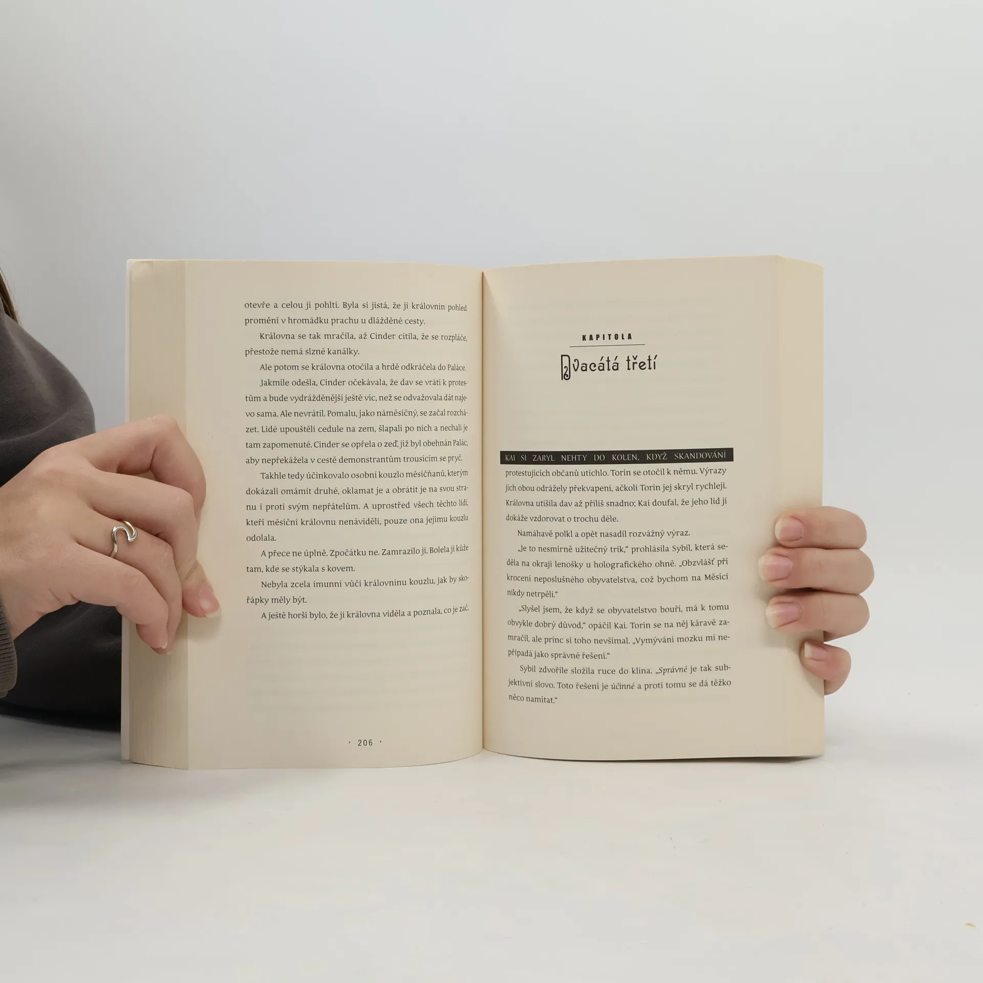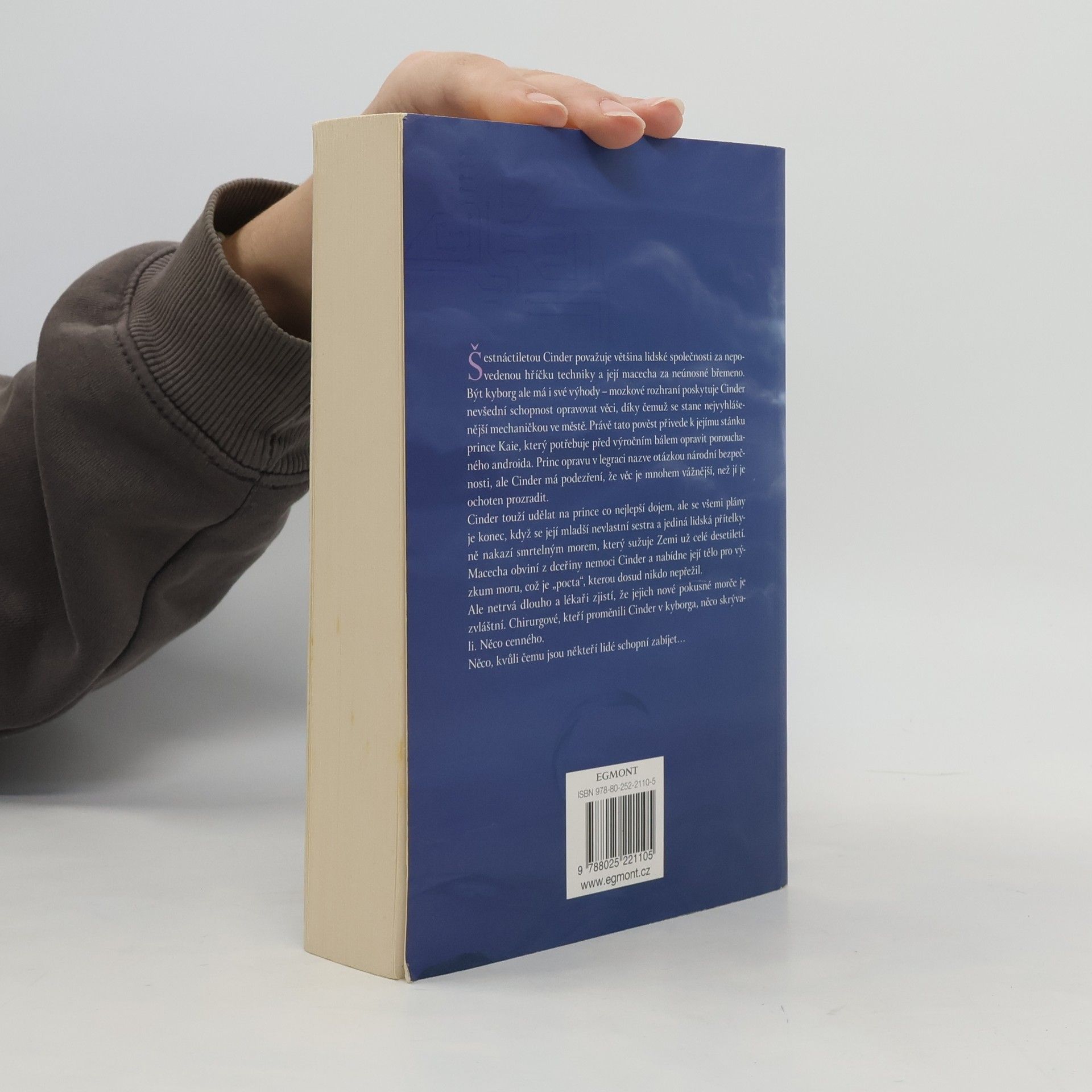 Rušné ulice Nového Pekingu se hemží lidmi a androidy. Populaci devastuje smrtící nákaza. Z vesmíru tomu přihlížejí krutí měsíční lidé, kteří čekají na správný okamžik. Nikdo netuší, že osud Země spočívá v rukou jediné dívky... Šestnáctiletou Cinder považuje většina lidské společnosti za nepovedenou hříčku techniky a její macecha za neúnosné břemeno. Být kyborg ale má i své výhody – mozkové rozhraní poskytuje Cinder nevšední schopnost opravovat věci (roboty, vznášedla, své vlastní nefungující součástky), díky čemuž se stane nejvyhlášenější mechaničkou v Novém Pekingu. Právě tato pověst přivede k jejímu stánku prince Kaie, který potřebuje před výročním bálem opravit porouchaného androida. Princ opravu v legraci nazve otázkou národní bezpečnosti, ale Cinder má podezření, že věc je mnohem vážnější, než jí je princ ochoten prozradit. Cinder touží udělat na prince co nejlepší dojem, ale se všemi plány je konec, když se její mladší nevlastní sestra a jediná lidská přítelkyně nakazí smrtelným morem, který sužuje Zemi už celé desetiletí. Macecha obviní z dceřiny nemoci Cinder a nabídne její tělo pro výzkum moru, což je „pocta“, kterou dosud nikdo nepřežil. Ale netrvá dlouho a vědci zjistí, že jejich nové pokusné morče je zvláštní. Chirurgové, kteří proměnili Cinder v kyborga, něco skrývali. Něco cenného. Něco, kvůli čemu jsou někteří lidé ochotní zabíjet…