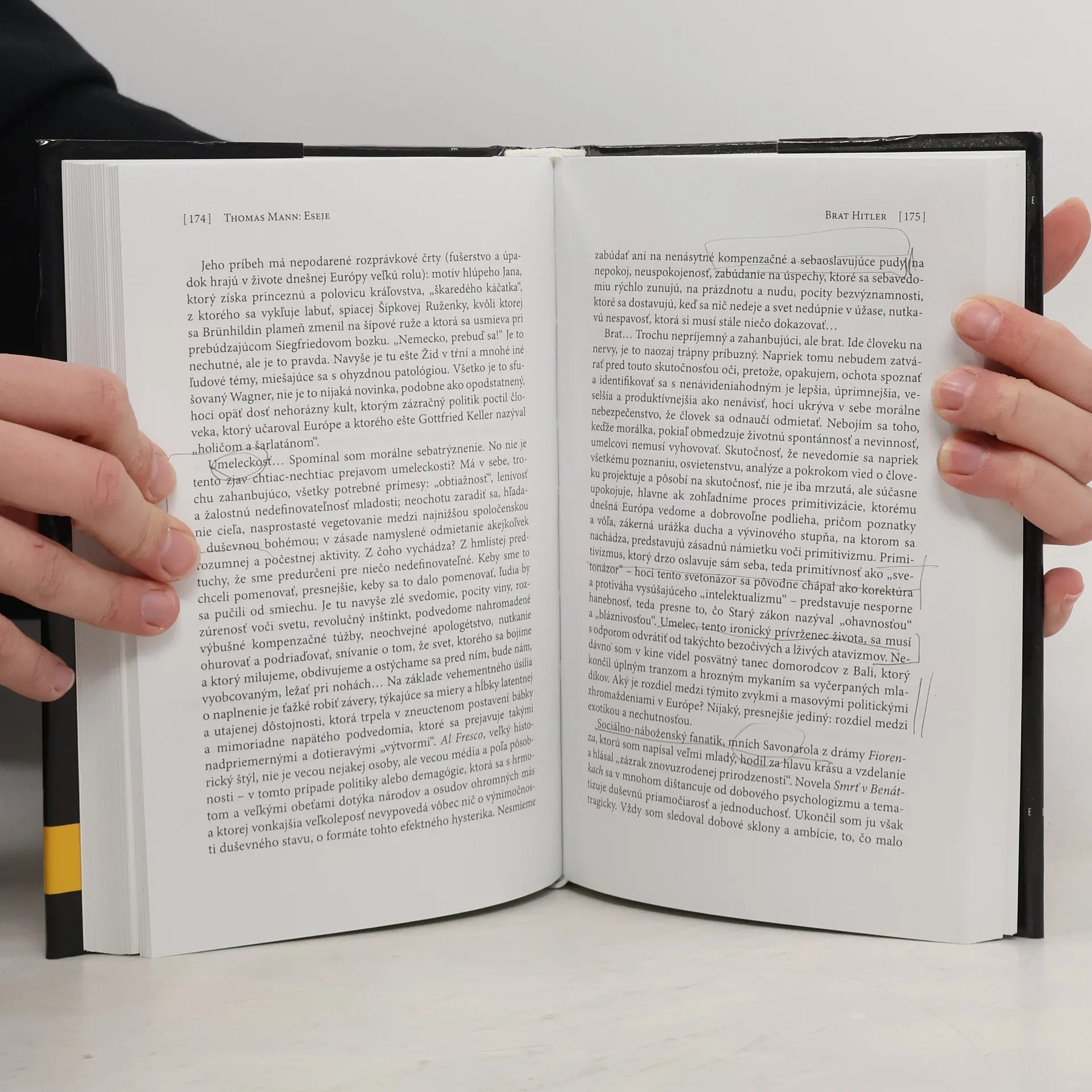 Výber z bohatého esejistického diela nositeľa Nobelovej ceny za literatúru Thomasa Manna zahŕňa práce venované najpálčivejším otázkam doby i nadčasovým témam umenia a estetiky, či reflexie vlastnej spisovateľskej profesie, takpovediac nazretia za „oponu“, ktorá zakrýva prípravu veľkého literárneho diela. Štylisticky vybrúsené úvahy jednej z najväčších svetových literárnych osobností dávajú šancu nazrieť do jej nevšedného myšlienkového sveta i do spektra záujmov, ktorým sa venovala.