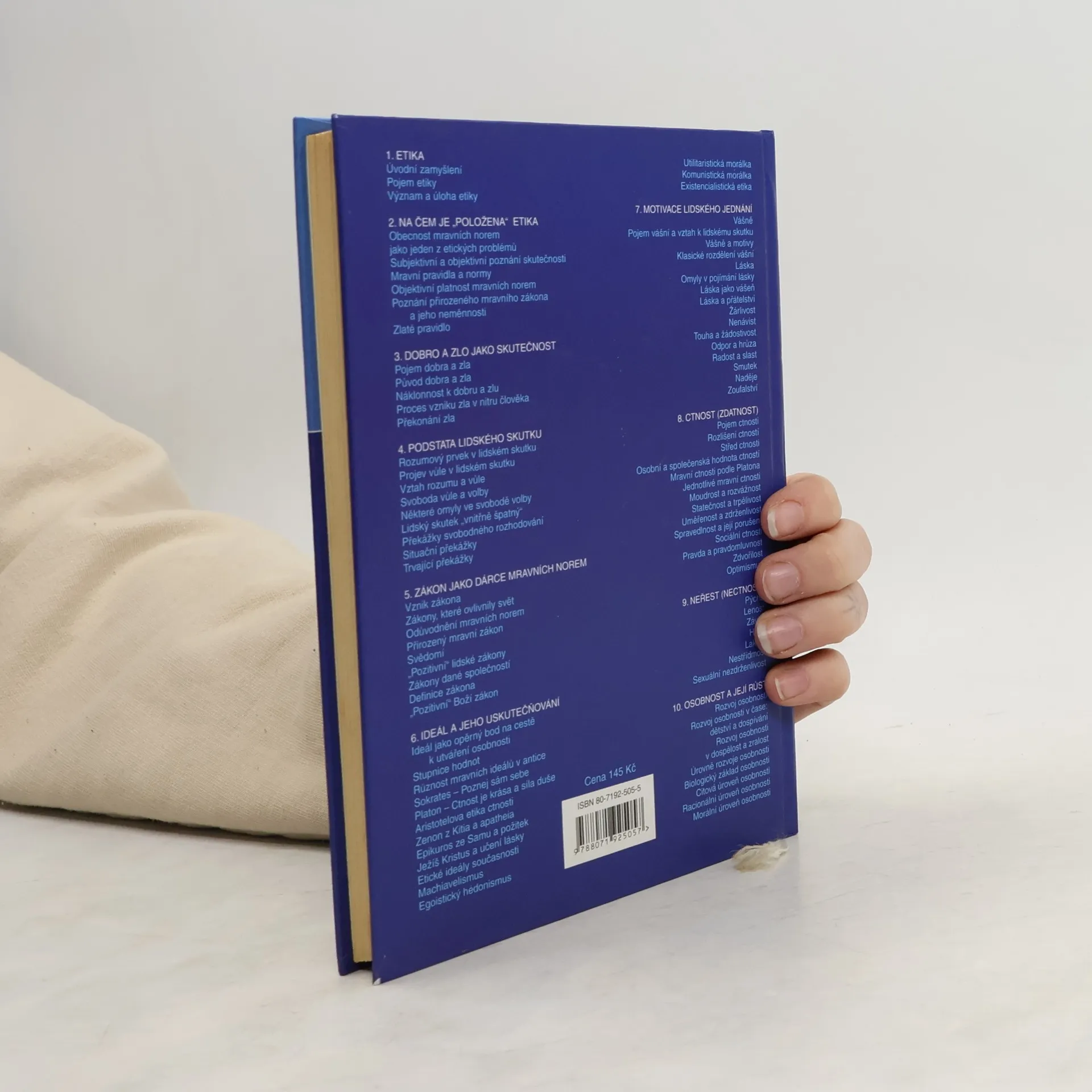 Základní témata etiky prezentuje autor způsobem, který je přístupný širokému okruhu čtenářů. Kniha tak může sloužit nejen jako učebnice pro středoškoláky, ale také jako kniha pro každého zájemce o danou problematiku. Tématické okruhy: Etika * Na čem je „položena” etika * Dobro a zlo jako skutečnost * Podstata lidského skutku * Zákon jako dárce mravních norem * Ideál a jeho uskutečňování * Motivace lidského jednání * Ctnost * Neřest * Osobnost a její růst*