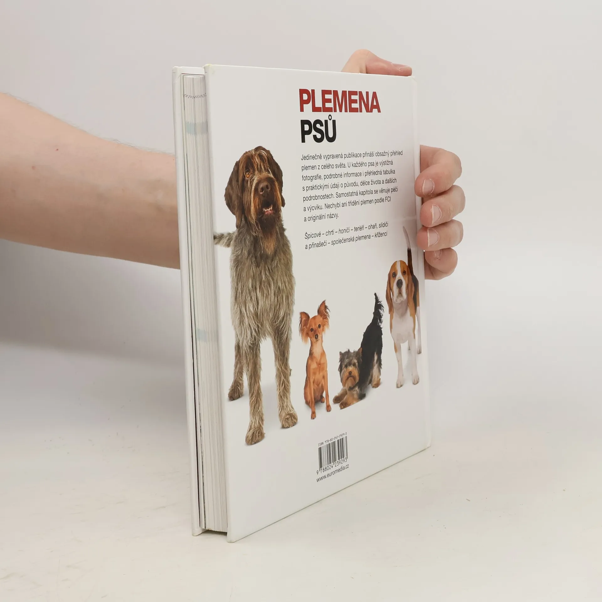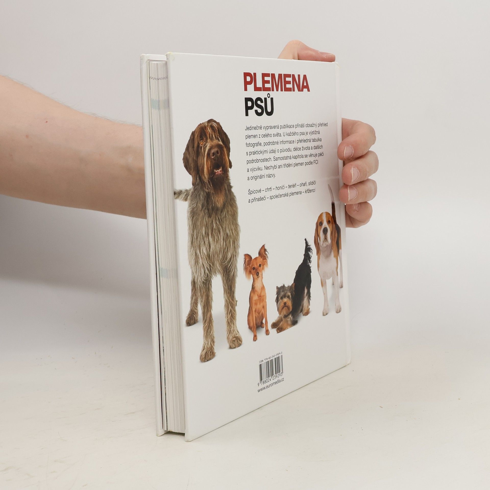 Jedinečně vypravená publikace přináší obsažný přehled plemen z celého světa. U každého psa je výstižná fotografie, podrobné informace i přehledná tabulka s praktickými údaji o původu, délce života a dalších podrobnostech. Samostatná kapitola se věnuje péči a výcviku. Nechybí ani třídění plemen podle FCI a originální názvy.