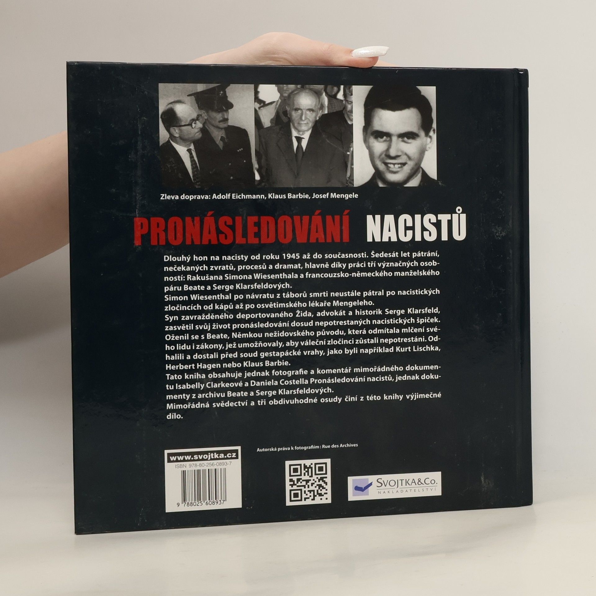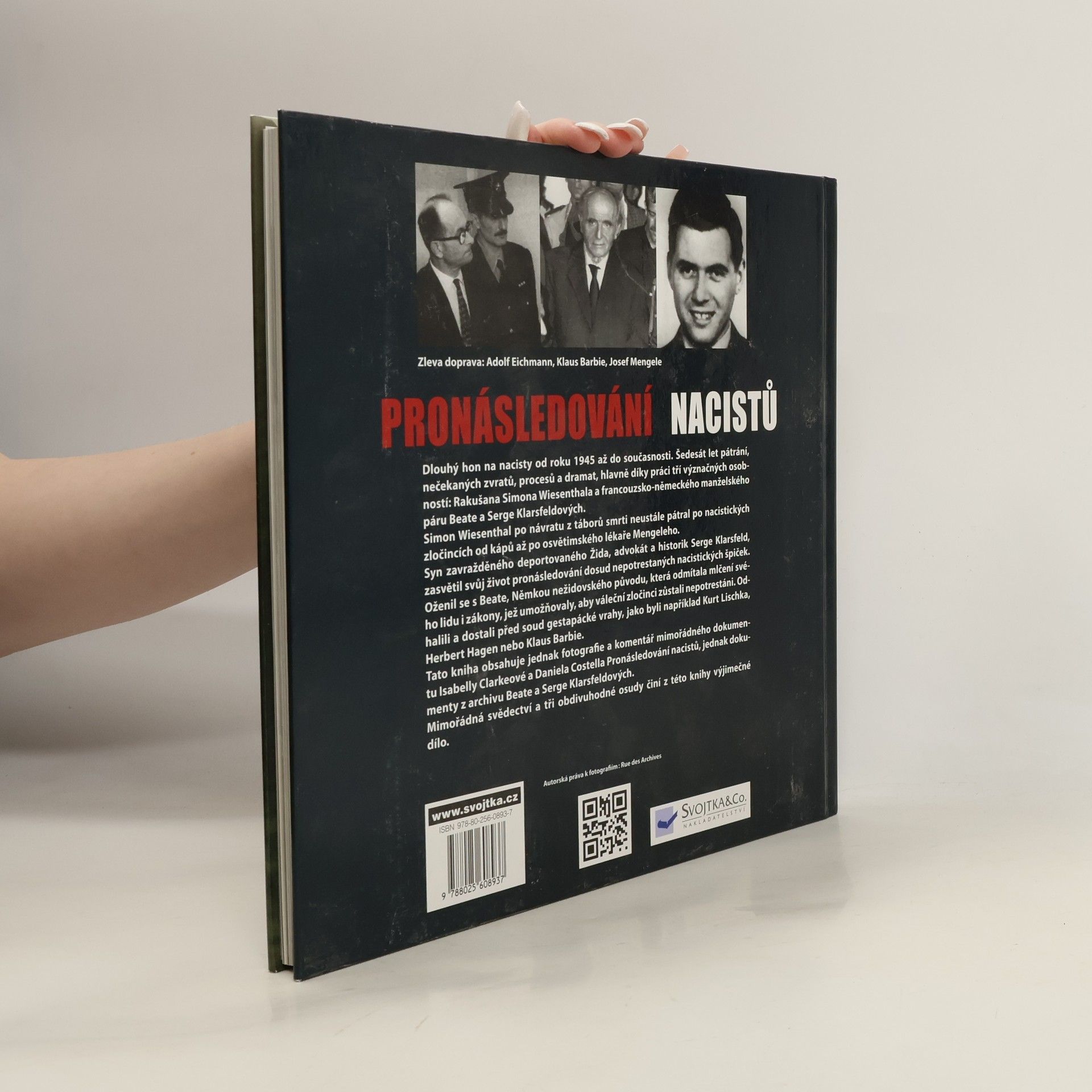 Dlouhý hon na nacisty se datuje od roku 1945 a trvá až do současnosti. Tato kniha líčí více než šedesát let pátrání, nečekaných zvratů, procesů a dramat, které proběhly hlavně díky práci tří význačných osobností: Rakušana Simona Wiesenthala a francouzsko-německého manželského páru Beate a Serge Klarsfeldových. Simon Wiesenthal po návratu z táboru smrti neustále pátral po nacistických zločincích od kápu až po osvětimského lékaře Mengeleho. Syn zavražděného deportovaného Žida, advokát a historik Serge Klarsfeld, zasvětil svůj život pronásledování dosud nepotrestaných nacistických špiček. Oženil se s Beate, Němkou nežidovského původu, která odmítala mlčení svého lidu i zákony, jež umožňovaly, aby váleční zločinci zůstali nepotrestáni. Společně odhalili a dostali před soud gestapácké vrahy, jako byli například Kurt Lischka, Herbert Hagen nebo Klaus Barbie. Tato kniha obsahuje jednak unikátní fotografie a komentář mimořádného filmového dokumentu Isabelly Clarkeové a Daniela Costella Hon na nacisty, jednak dokumenty z archivu Beate a Serge Klarsfeldových. Mimořádná svědectví a tri obdivuhodné osudy činí z této knihy výjimečné dílo.