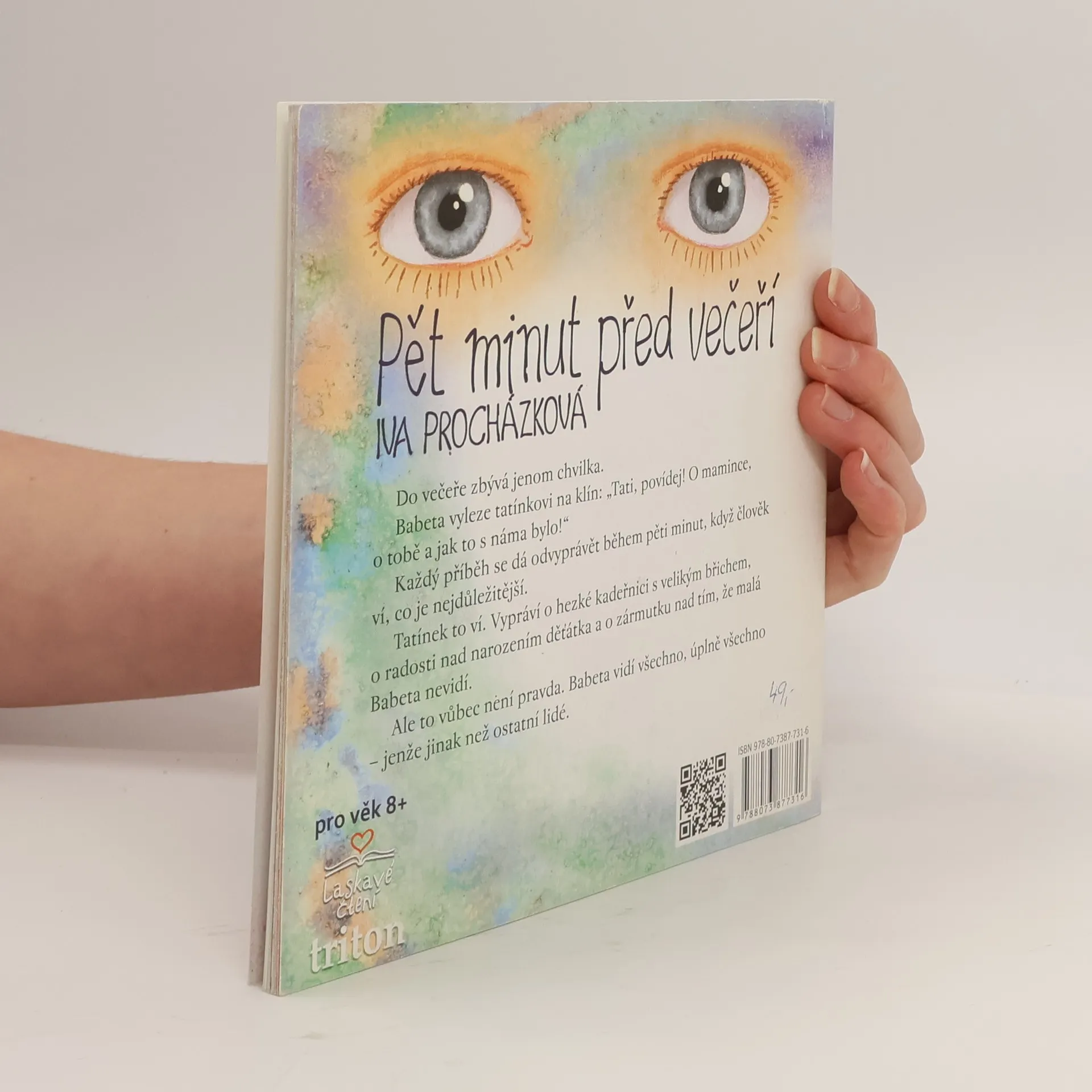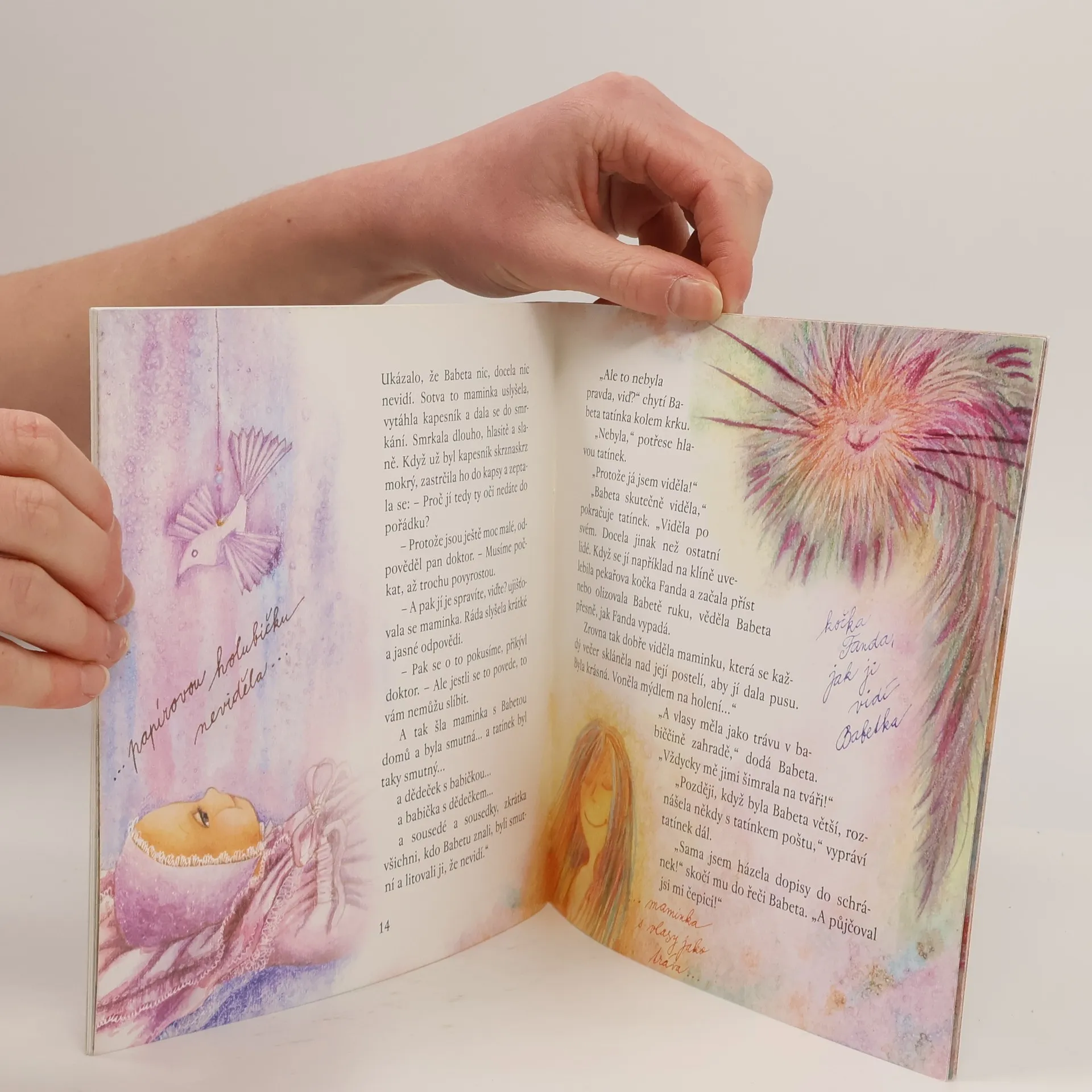 Do večeře zbývá jenom chvilka. Babeta vyleze tatínkovi na klín: „Tati, povídej! O mamince, o tobě a jak to s náma bylo!“Každý příběh se dá odvyprávět během pěti minut, když člověk ví, co je nejdůležitější.Tatínek to ví. Vypráví o hezké kadeřnici s velikým břichem,o radosti nad narozením děťátka a o zármutku nad tím, že malá Babeta nevidí. Ale to vůbec není pravda. Babeta vidí všechno, úplně všechno – jenže jinak než ostatní lidé.