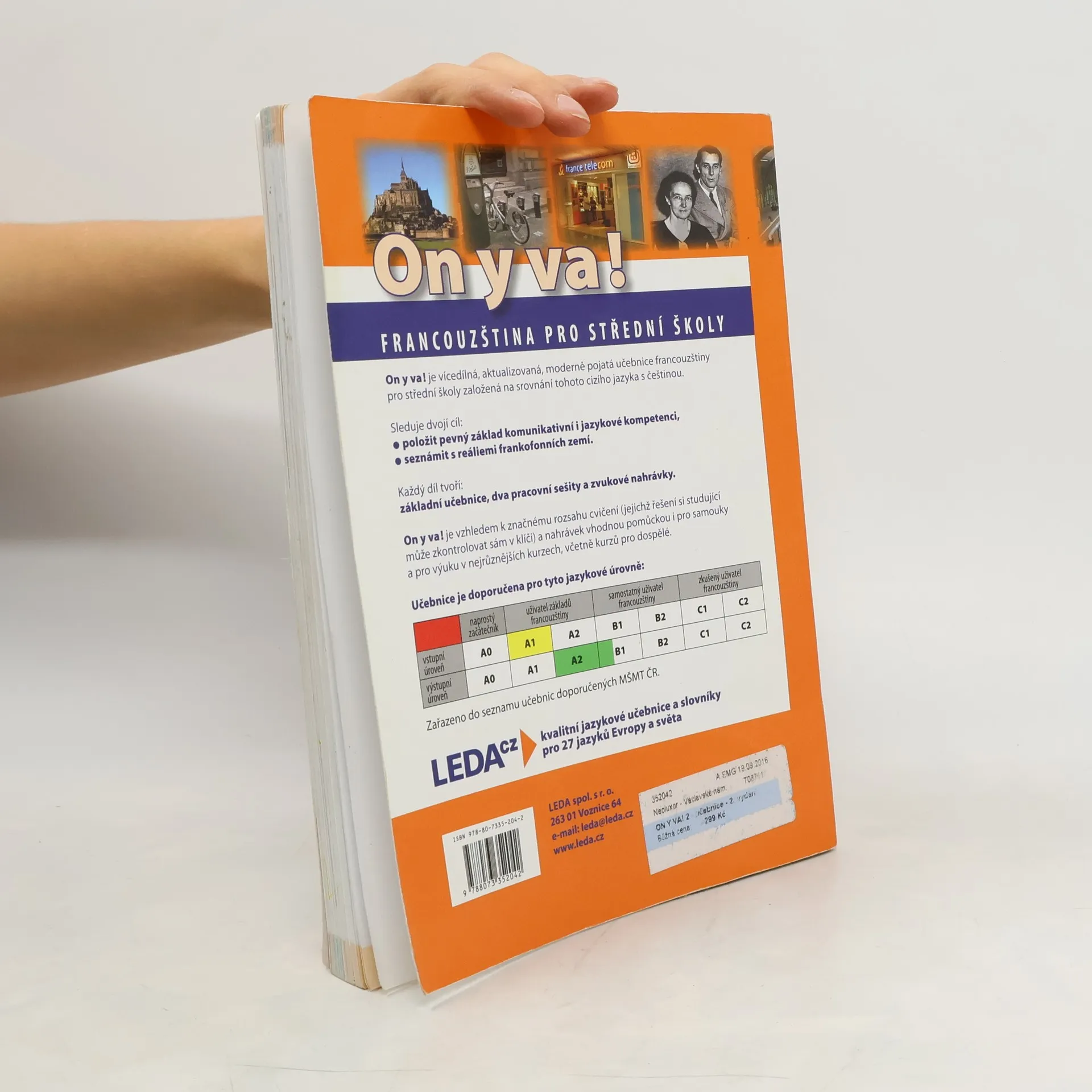 Aktualizovaná, moderně pojatá učebnice francouzštiny pro střední školy založená na srovnání tohoto cizího jazyka s češtinou. Sleduje dvojí cíl: položit pevný základ komunikativní i jazykové kompetenci a seznámit s reáliemi frankofonních zemí. On y va! je vzhledem k značnému rozsahu cvičení a nahrávek vhodnou pomůckou i pro samouky a pro výuku v nejrůznějších kurzech, včetně kurzů pro dospělé.