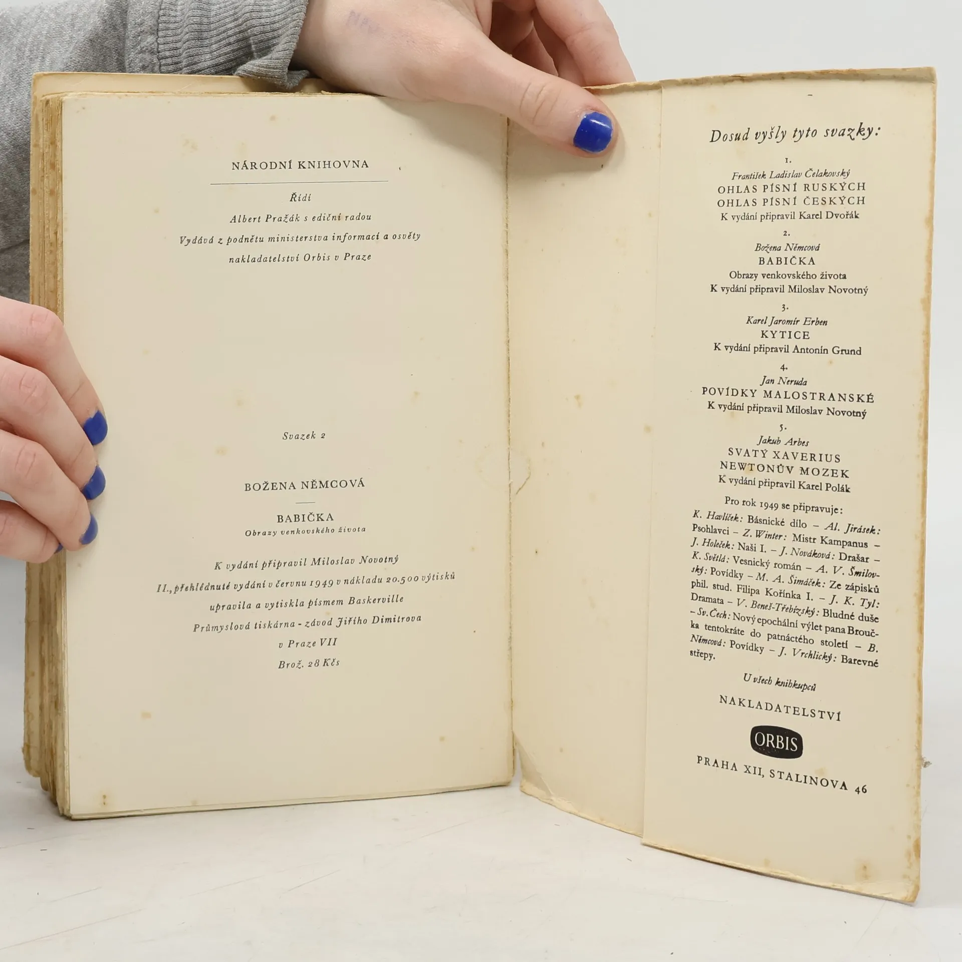 Nejznámější prózu Boženy Němcové jistě netřeba blíže představovat - patří k nejčtenějším českým knihám. Poprvé vyšla v roce 1855 a od té doby byla publikována ve více než třech stovkách českých vydání a v mnoha zahraničních překladech. Své vzpomínky na dětství, prožité v ratibořickém údolí s babičkou Magdalénou Novotnou, autorka přetavila do částečně idealizované, ale přesto realistické podoby.