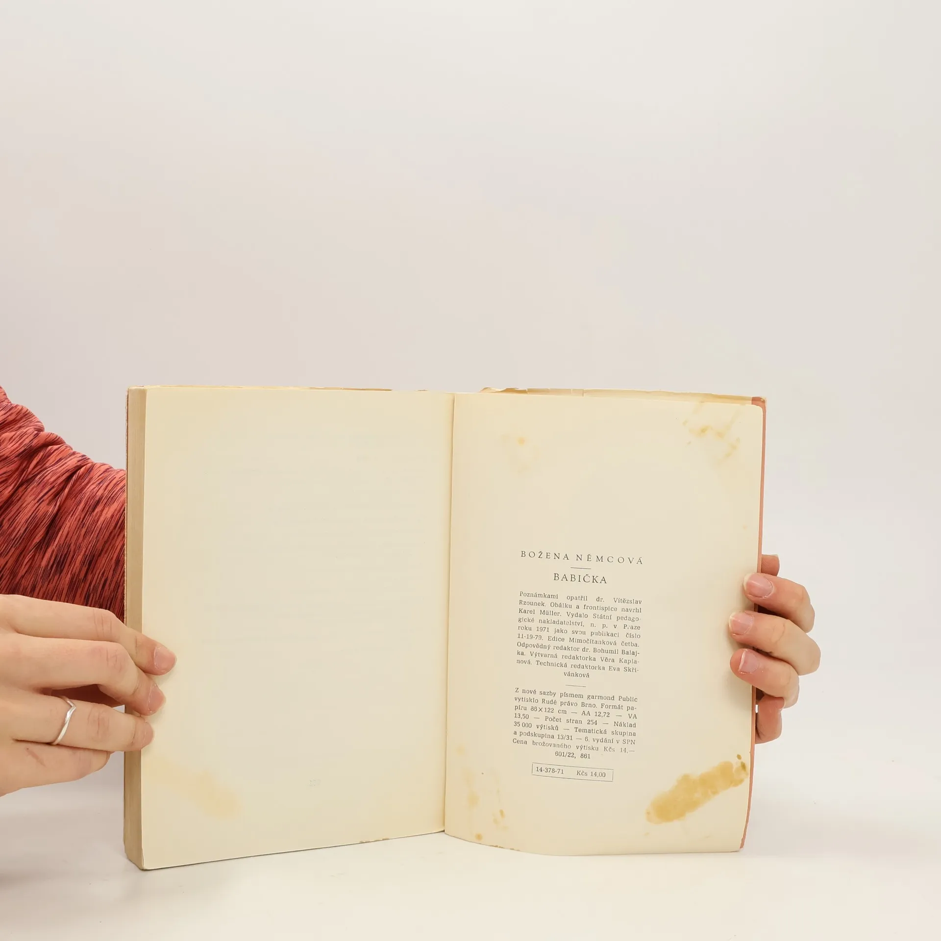 Babička je nejznámějším dílem Boženy Němcové. Jedná se o novelu, kterou psala v době, kdy jí umíral syn. Autorka zde zachycuje dění na venkově se všemi zvyky. Nejslavnější klasické dílo spisovatelky Boženy Němcové není třeba dlouze představovat. Malebný příběh z venkova 19. století nám vypráví o životě a hodnotách prostých lidí i vrchnosti. Kdo by mohl zapomenout na babičku a její nejoblíbenější vnučku Barunku, paní kněžnu a její schovanku Hortensii či Viktorku a černého vojáka. Medailón o autorce napsal Mojmír Otruba. 22-086-71