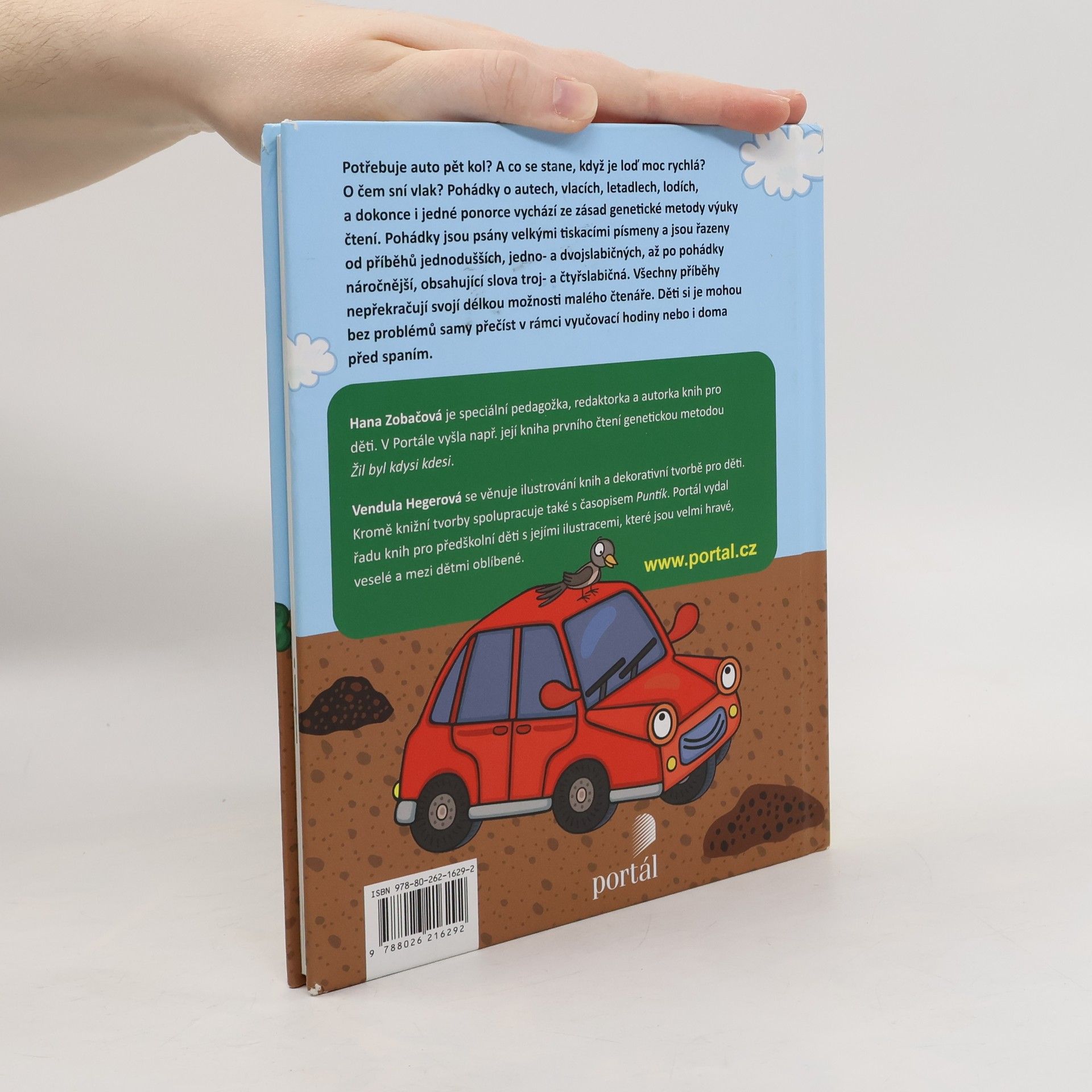 Potřebuje auto pět kol? A co se stane, když je loď moc rychlá? O čem sní vlak? Pohádky o autech, vlacích, letadlech, lodích a dokonce i jedné ponorce vychází ze zásad genetické metody výuky čtení. Pohádky jsou psány velkými tiskacími písmeny a jsou řazeny od příběhů jednodušších, jedno a dvojslabičných, až po pohádky náročnější, obsahující slova troj- a čtyřslabičná. Všechny příběhy nepřekračují svojí délkou možnosti malého čtenáře. Děti si je mohou bez problémů samy přečíst v rámci vyučovací hodiny nebo i doma před spaním.