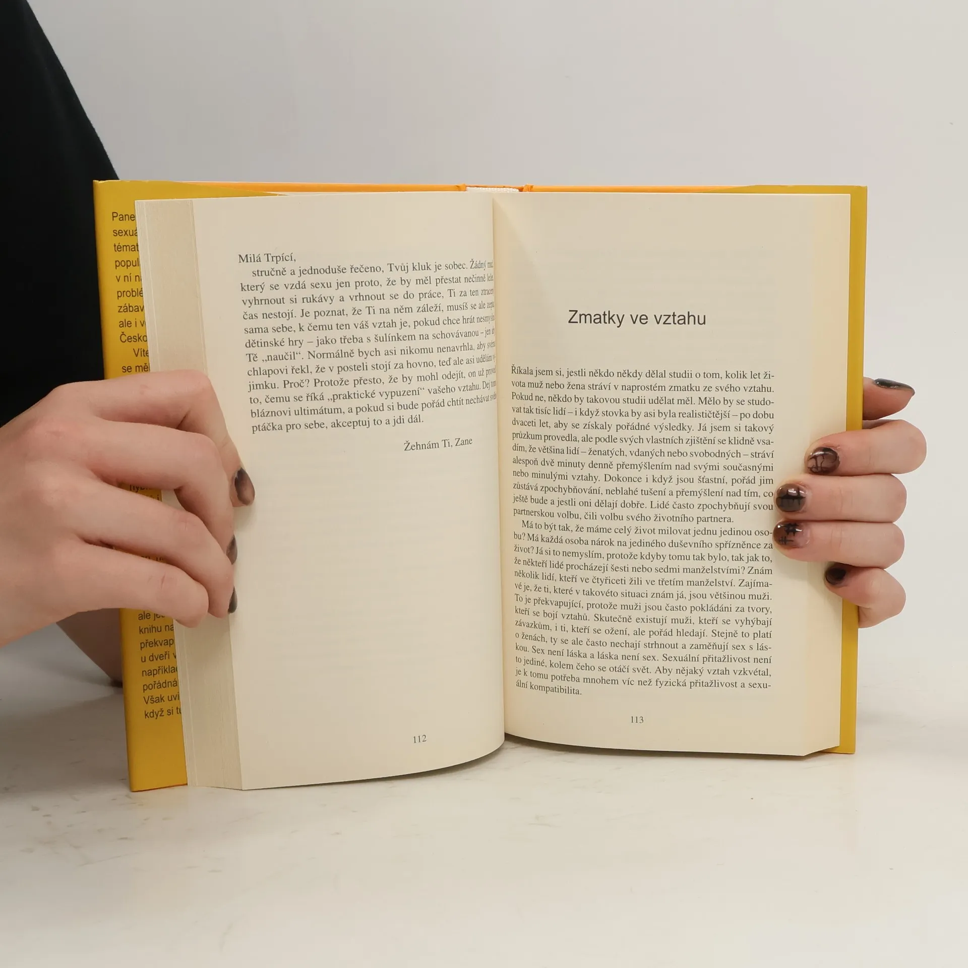 Víte, co ještě nevíte o sexu a erotice? Kniha z jedné z nejprodávanějších autorek podle New York Times. Panenství, anální sex, nevěra, sexuální hračky, to jsou jen některá témata, která ve své knize rozvíjí v USA velmi populární černá autorka Zane. V knize ovšem nenajdete jen pustou teorii, nýbrž skoro samé dopisy od skutečných lidí, mužů i žen, kteří během let žádali Zane o radu. Byla mezi nimi např. kazatelova žena, která se obávala zatracení, dívka, co si nevěděla rady s panenstvím, homosexuální pán nebo dáma s přebytkem sexuální energie. Zane je zkrátka velmi zkušená psycholožka, která dokáže nejen poradit, ale ještě k tomu i pořádně nažhavit. Nejlépe se přesvědčíte, když si tuhle pikantní knížku prostě přečtete.