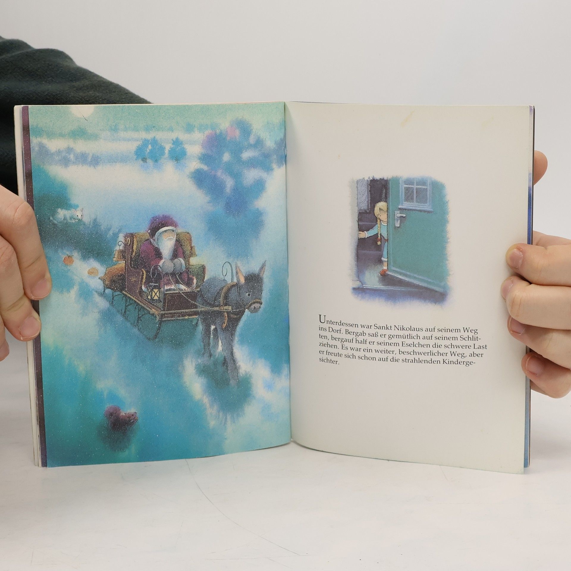 Sankt Nikolaus ist auf seinem Weg durch den kalten Winterwald vom Holzfäller Ruprecht zu einem heißen Tee eingeladen worden. Nun aber sitzt er verzweifelt auf seinem Schlitten: Er hat auf seiner holprigen Fahrt alle Nüsse, Äpfel, Lebkuchen und Päckchen verloren, denn der Sack hat ein Loch. Aber die Kinder im Dorf warten doch auf ihn! Da sieht er vom Wald her eine Gestalt kommen, die einen großen Sack auf dem Rücken trägt. Es ist Ruprecht, der alle die verlorenen Sachen eingesammelt hat. Zum Dank ernennt ihn Sankt Nikolaus zu seinem Gehilfen und seither gehen sie gemeinsam von Haus zu Haus