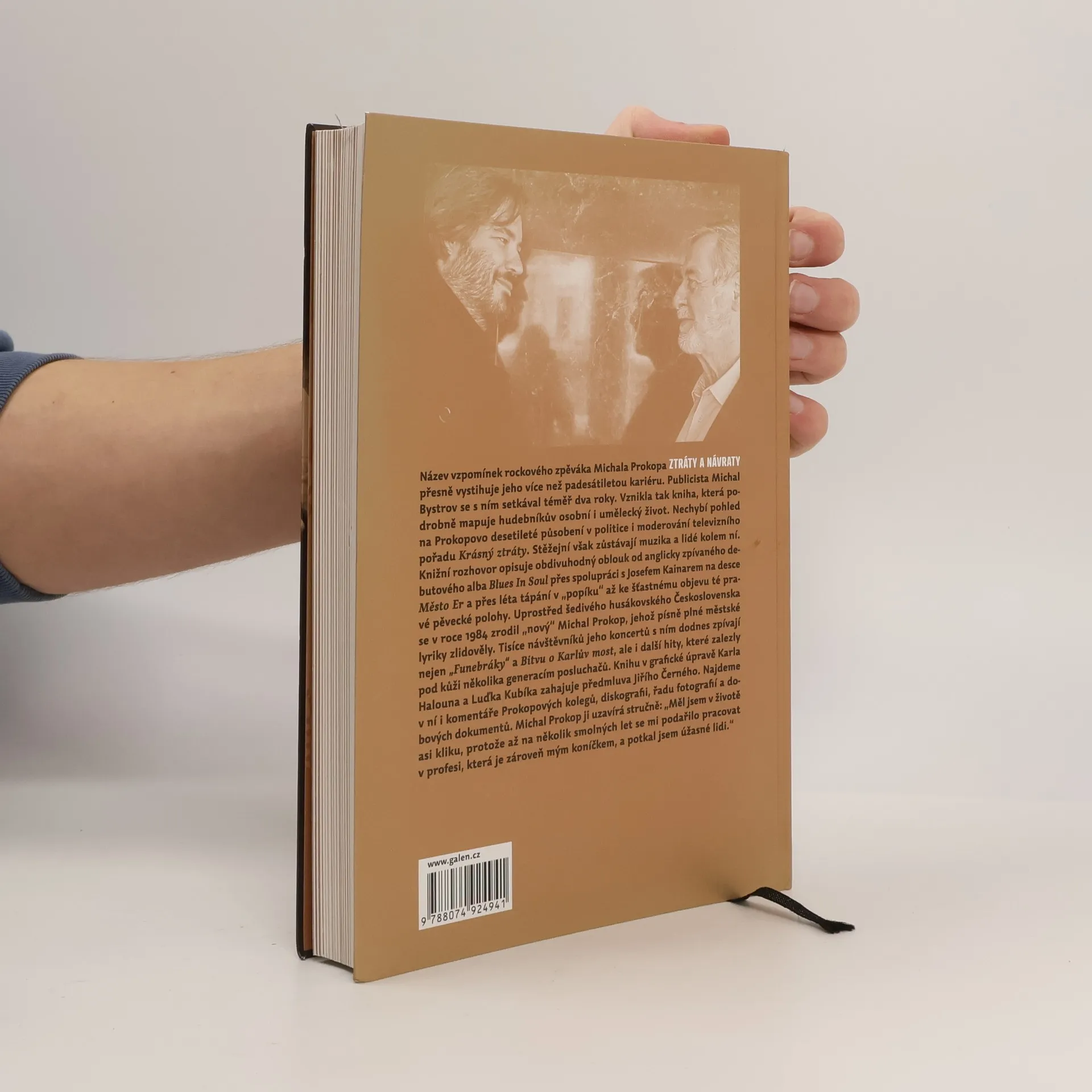 Název vzpomínek rockového zpěváka Michala Prokopa ZTRÁTY A NÁVRATY přesně vystihuje jeho více než padesátiletou kariéru. Publicista Michal Bystrov se s ním setkával téměř dva roky. Vznikla tak kniha, která podrobně mapuje hudebníkův osobní i umělecký život. Nechybí pohled na Prokopovo desetileté působení v politice i moderování televizního pořadu Krásný ztráty. Stěžejní však zůstávají muzika a lidé kolem ní. Knižní rozhovor opisuje obdivuhodný oblouk od anglicky zpívaného debutového alba Blues In Soul přes spolupráci s Josefem Kainarem na desce Město Er a přes léta tápání v „popíku“ až ke šťastnému objevu té pravé pěvecké polohy. Uprostřed šedivého husákovského Československa se v roce 1984 zrodil „nový“ Michal Prokop, jehož písně plné městské lyriky zlidověly. Tisíce návštěvníků jeho koncertů s ním dodnes zpívají nejen „Funebráky“ a „Bitvu o Karlův most“, ale i další hity, které zalezly pod kůži několika generacím posluchačů. Knihu v grafické úpravě Karla Halouna a Luďka Kubíka zahajuje předmluva Jiřího Černého. Najdeme v ní i komentáře Prokopových kolegů, diskografii, řadu fotografií a dobových dokumentů. Michal Prokop ji uzavírá stručně: „Měl jsem v životě asi kliku, protože až na několik smolných let se mi podařilo pracovat v profesi, která je zároveň mým koníčkem, a potkal jsem úžasné lidi.“